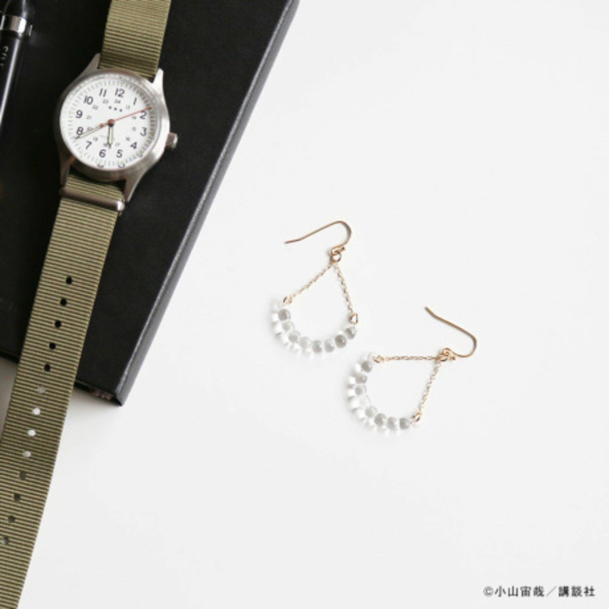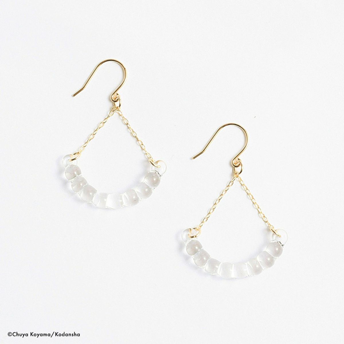 HARIO Lampwork Factoryさんのピアスに、ISSでせりかが涙を流したシーンのステッカーを添えて、「せりかの涙シリーズ」としてご用意しました。