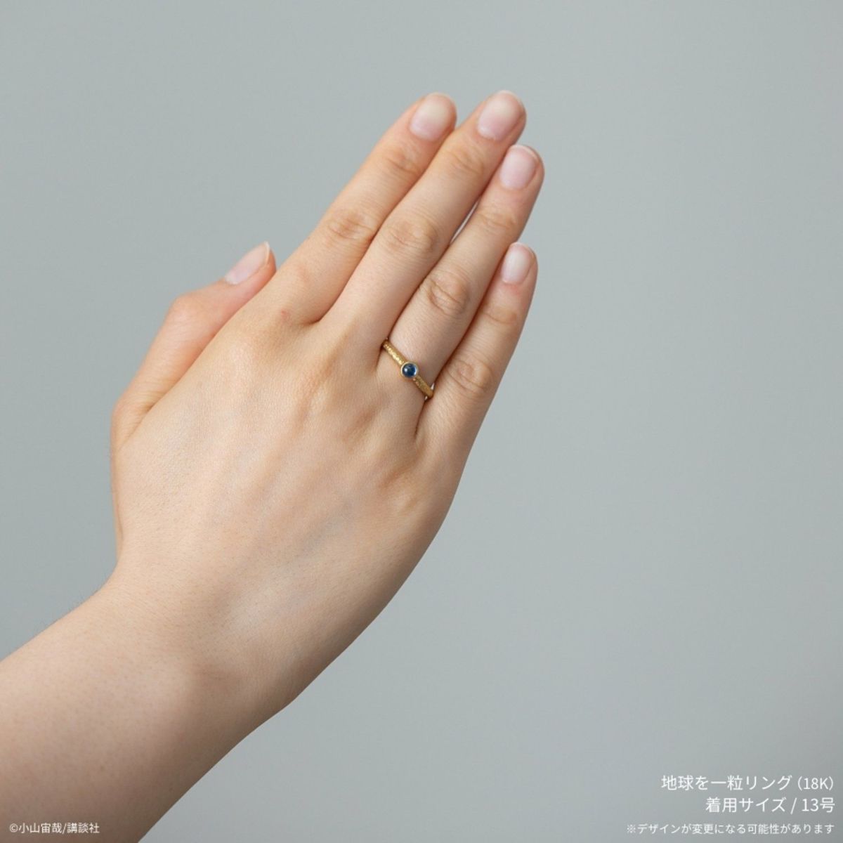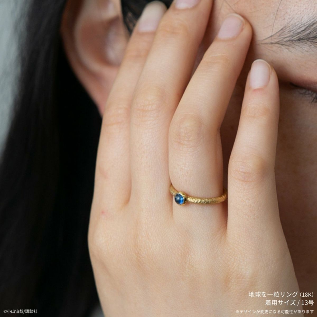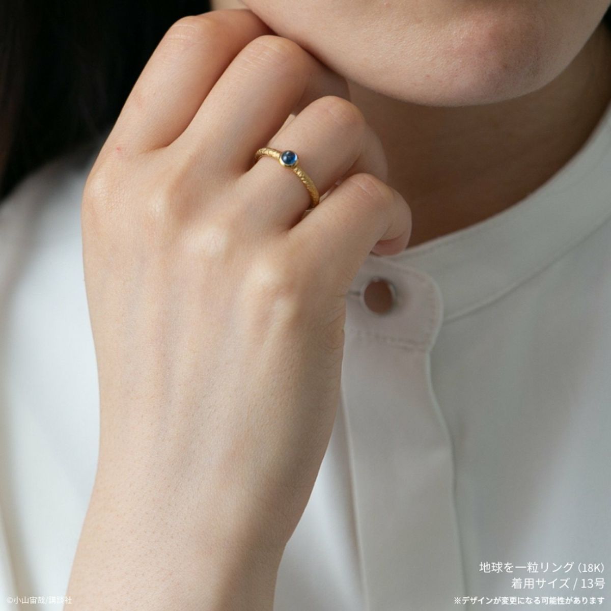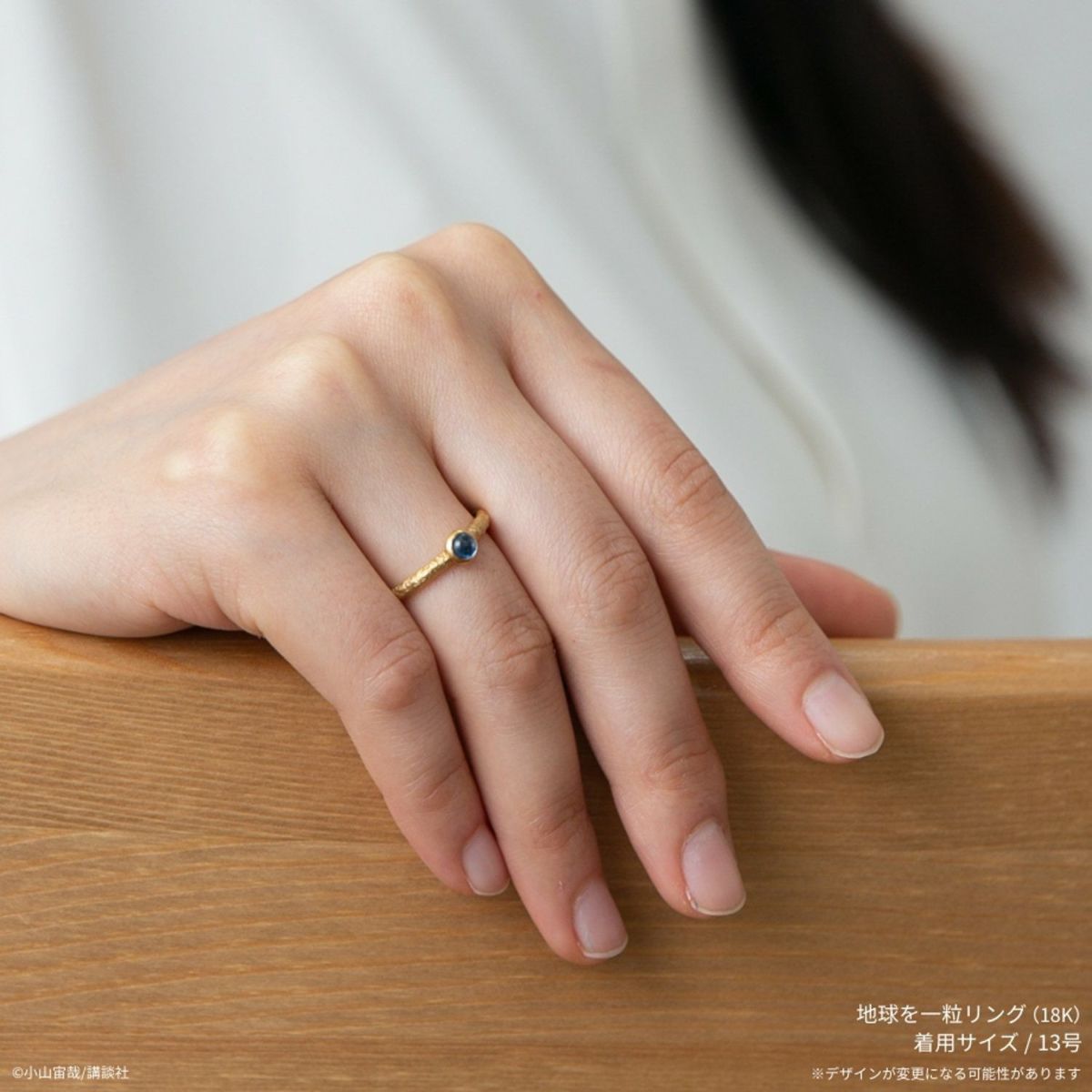 「地球」を思わせる青い石を1つあしらった「地球を一粒リング」