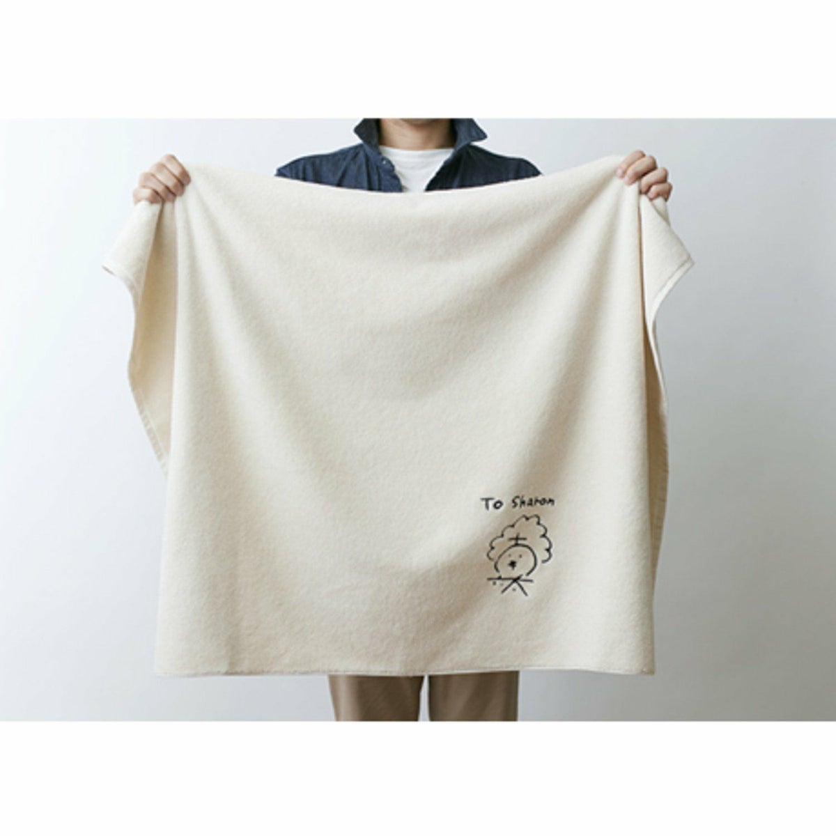 原作のようにひざ掛けとしても、肩掛けとして羽織っても、仮眠用の毛布としても使いやすい大判サイズ。