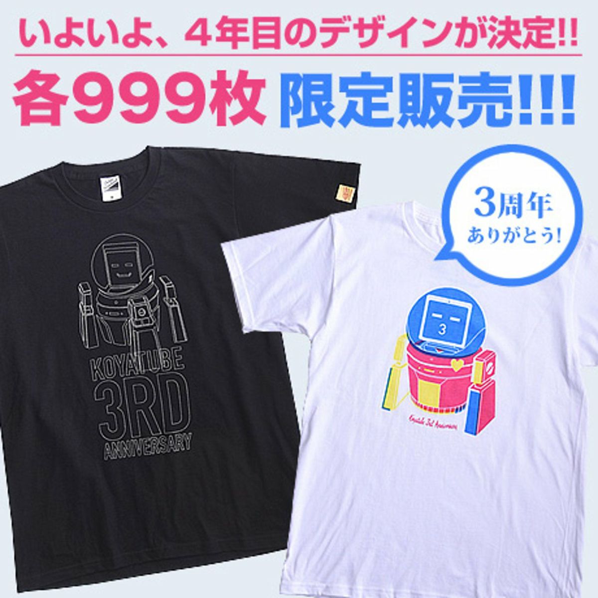 コヤチュー部の「投票」でデザインを決めた設立3周年の記念Tシャツ。