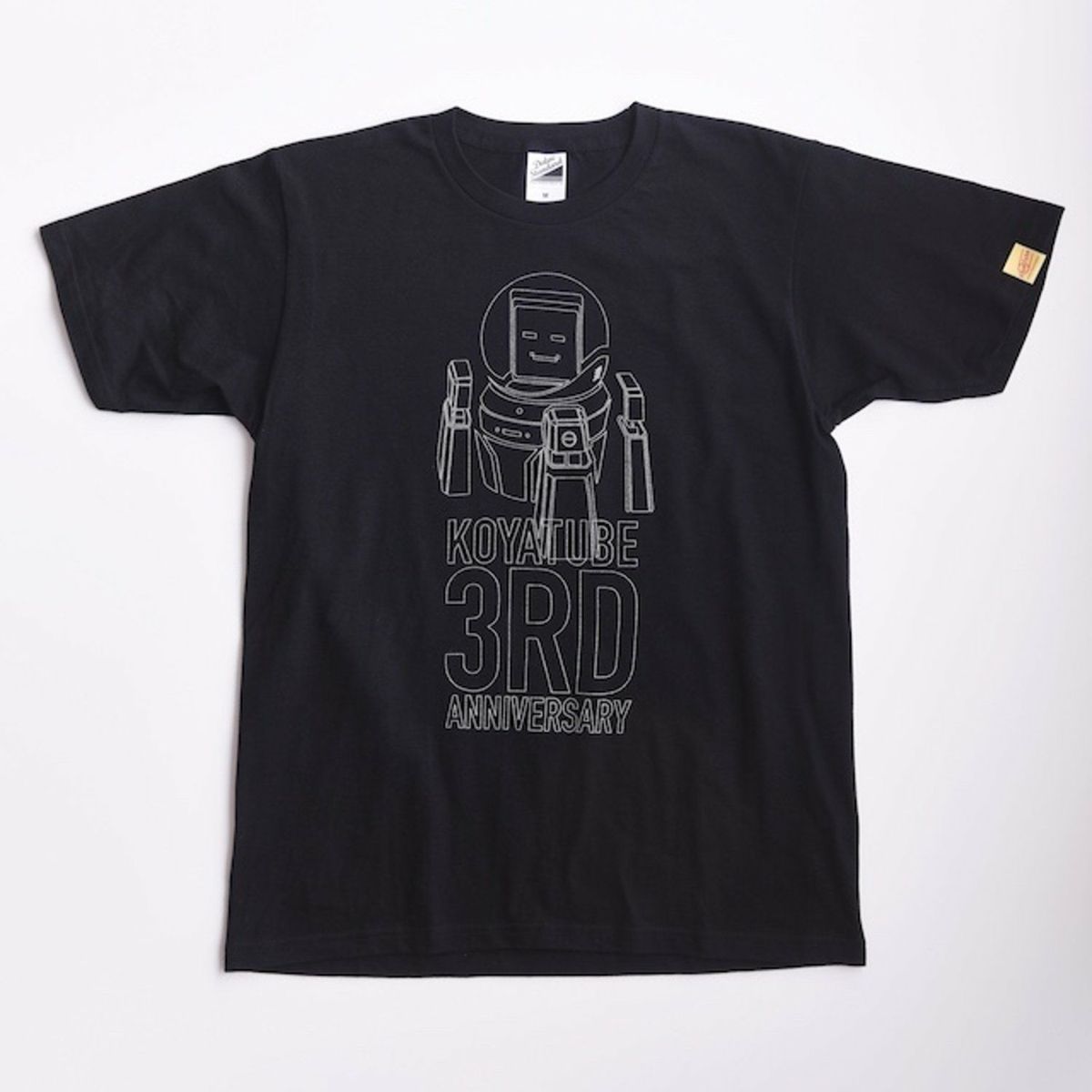 「フ~ン♪」と言っているかのようなブギーの口元には、3周年の「3」をデザイン。着るだけで「サンシャーーイン♪」な気持ちになるようなポップで可愛いTシャツです☆左袖にはコヤチュー部のネームタグが付き、ワンポイントのアクセントに。