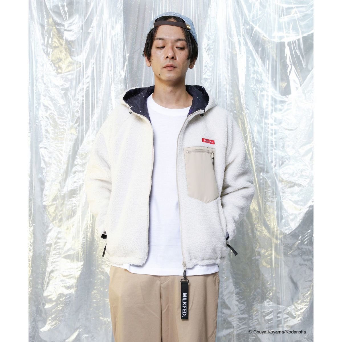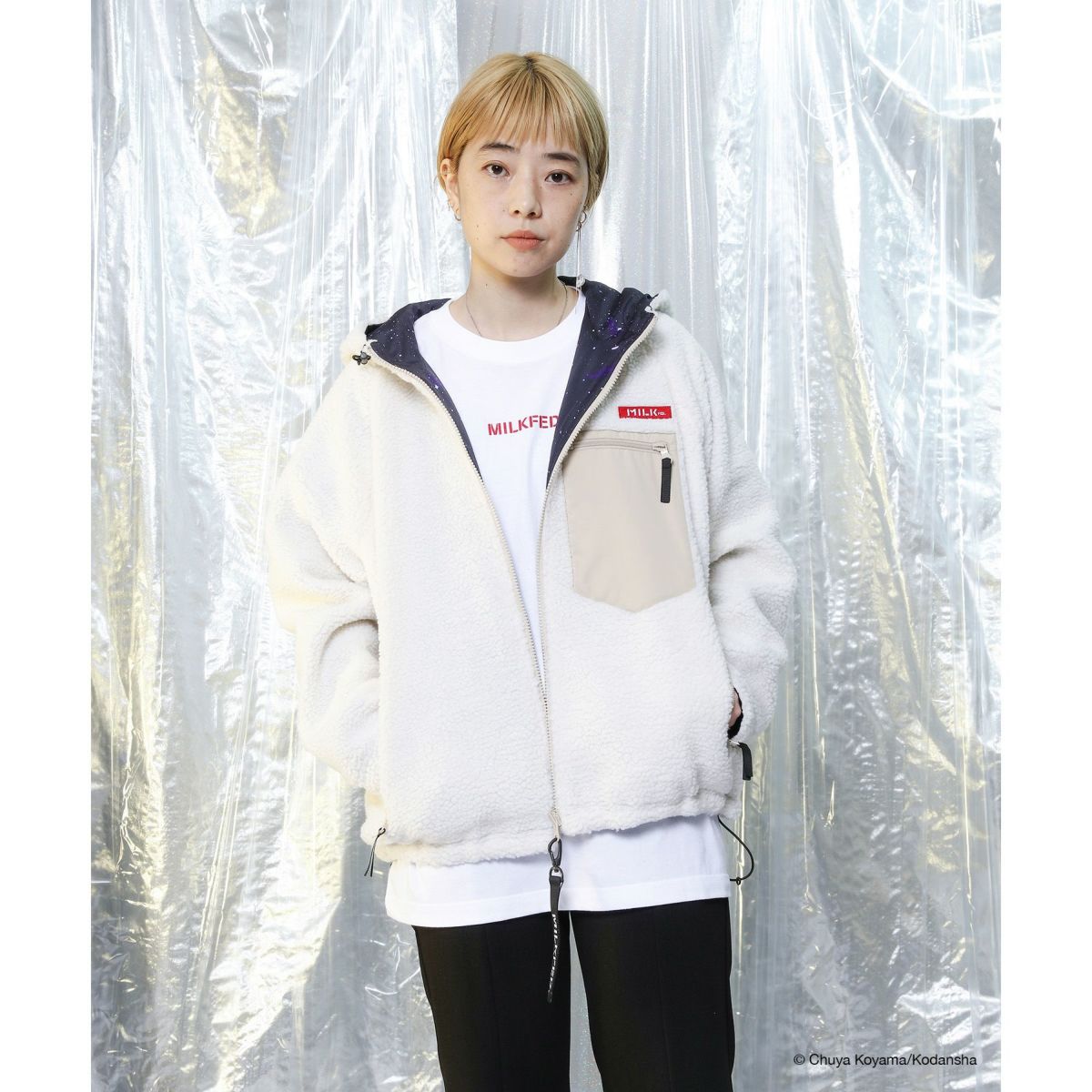 【数量限定再販】MILKFED.×SPACE BROTHERS REVERSIBLE BOA JACKET ホワイト [LANDS ON ZOZOTOWN]