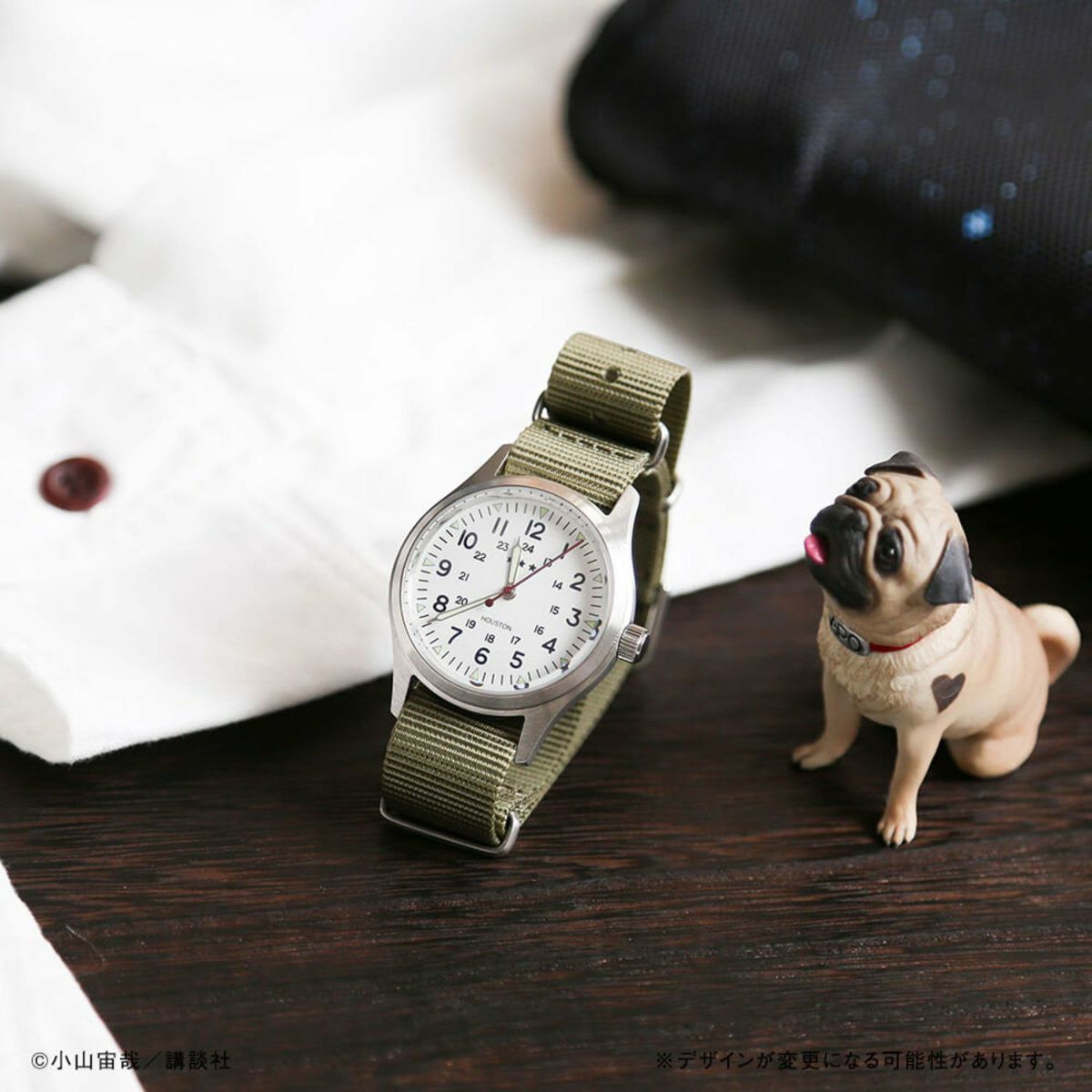 ちょっとだけ手がかかる、そんなところがかっこいい手巻きであることはもちろん、ミリタリー風のフォルム、丈夫なバンド、せりかが“ちょんちょん”と触っていた厚めの風防まで、可能な限り細部まで忠実に再現。まるで作中から飛び出してきたかのような一品です。