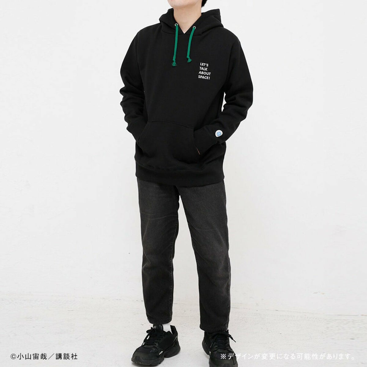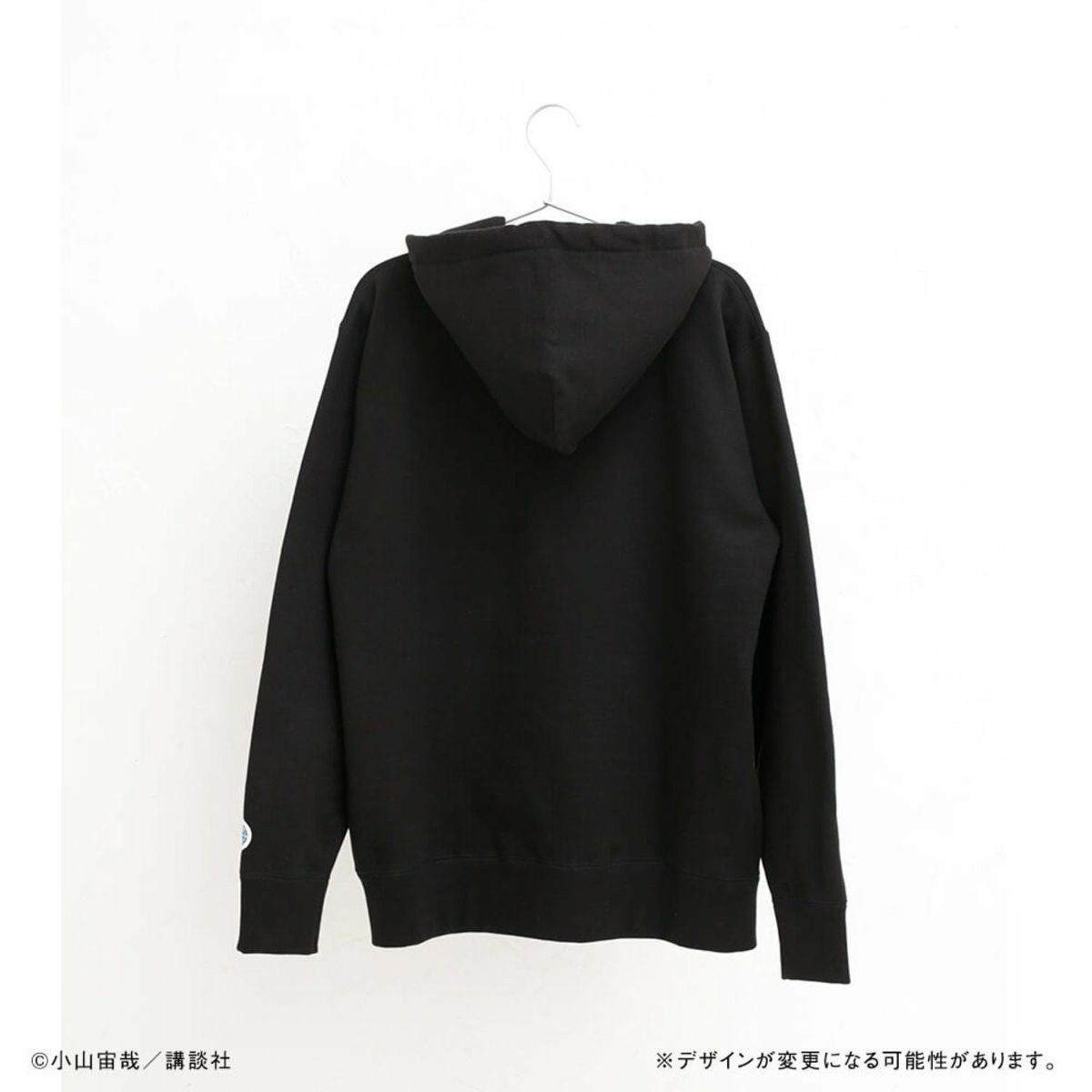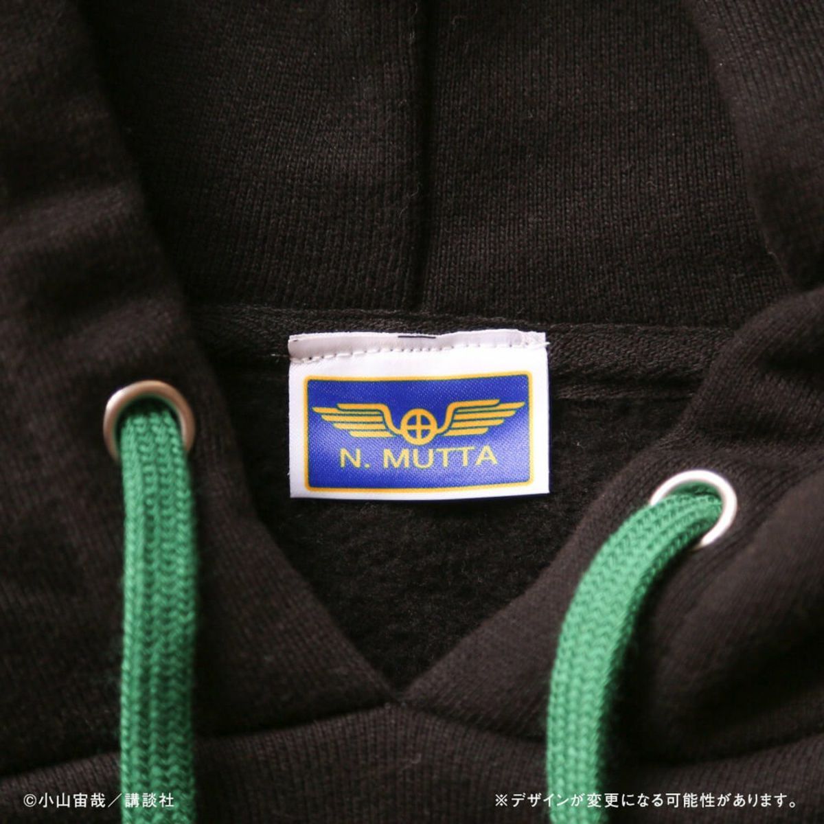 胸元には「Let’s talk about Space!」の言葉が。ムッタが宇宙飛行士選抜試験の最中に言った「宇宙の話をしよう」を英訳し、さり気なくあしらいました。パーカーを着れば、あなたもあの日のムッタのように、まっすぐに夢に向かう気持ちを確かめられるかもしれません!