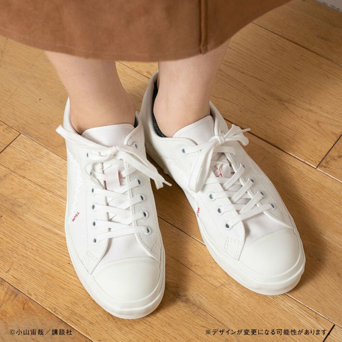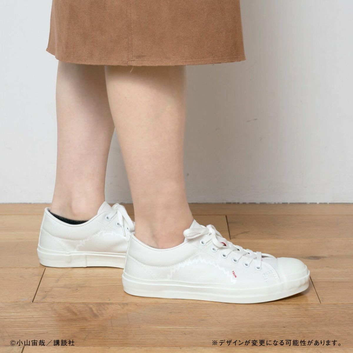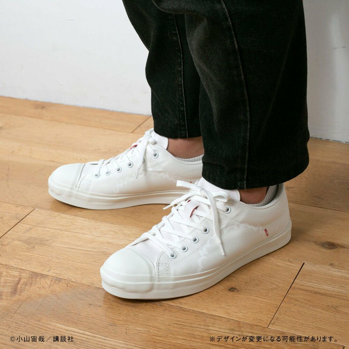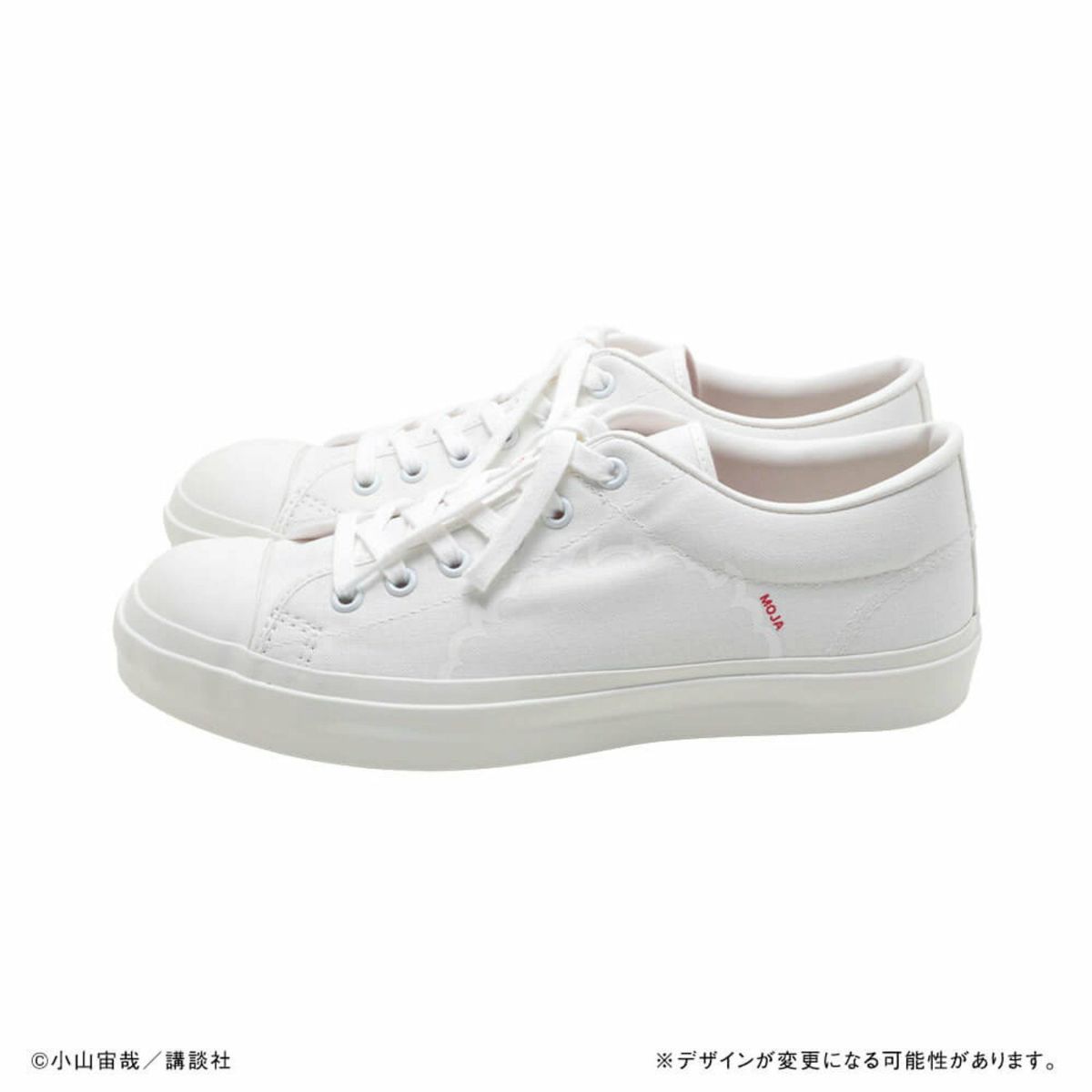 そして、自身も大のスニーカー好きである小山宙哉が、さらに汎用性の高い「ホワイト」バージョンを発案。アッパーからソールまで、オールホワイトで作られた、別注ならぬ別“宙”色です!赤文字で入れられた「MOJA」「TSUN」の文字が可愛いアクセントに。