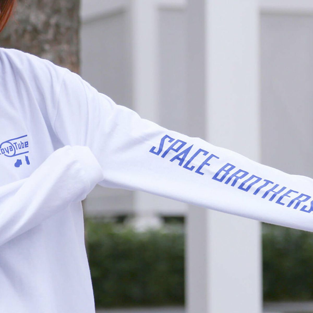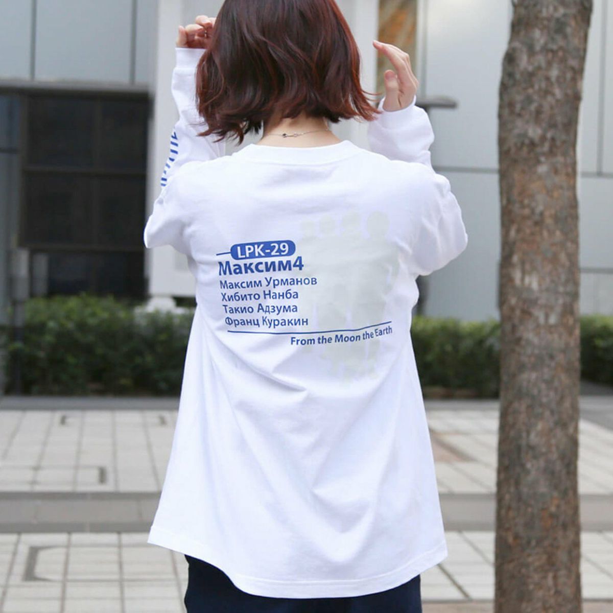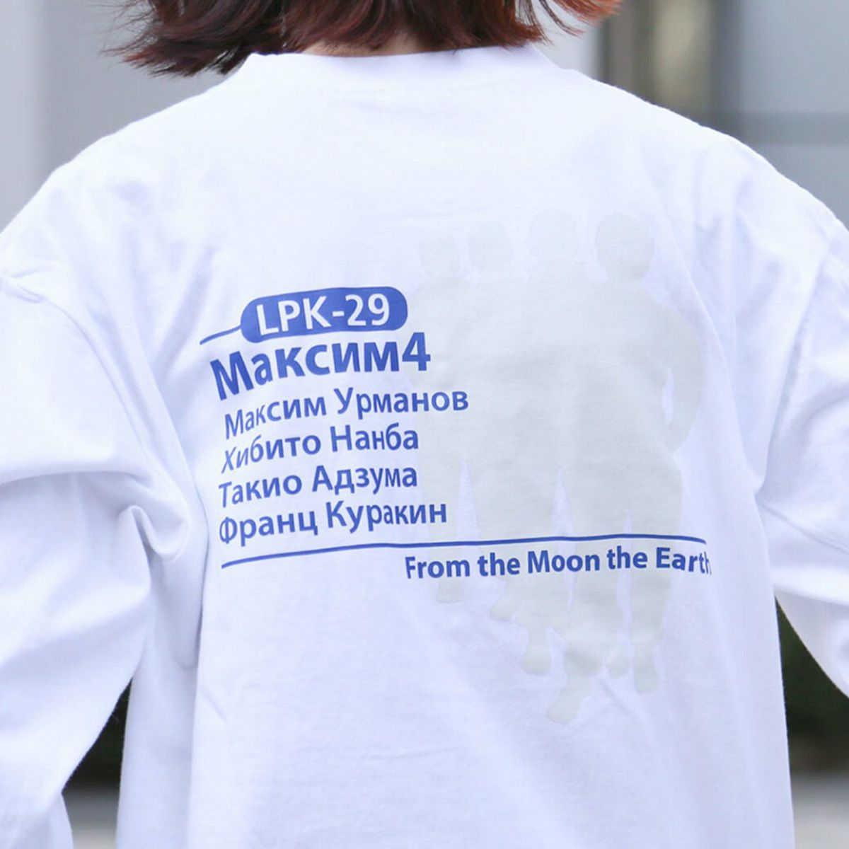 ロングTシャツにはロシア語表記のデザインが入っていたり、全体のアイテムが打ち上げの空を模した表紙カラーである淡いブルーでデザインされています。