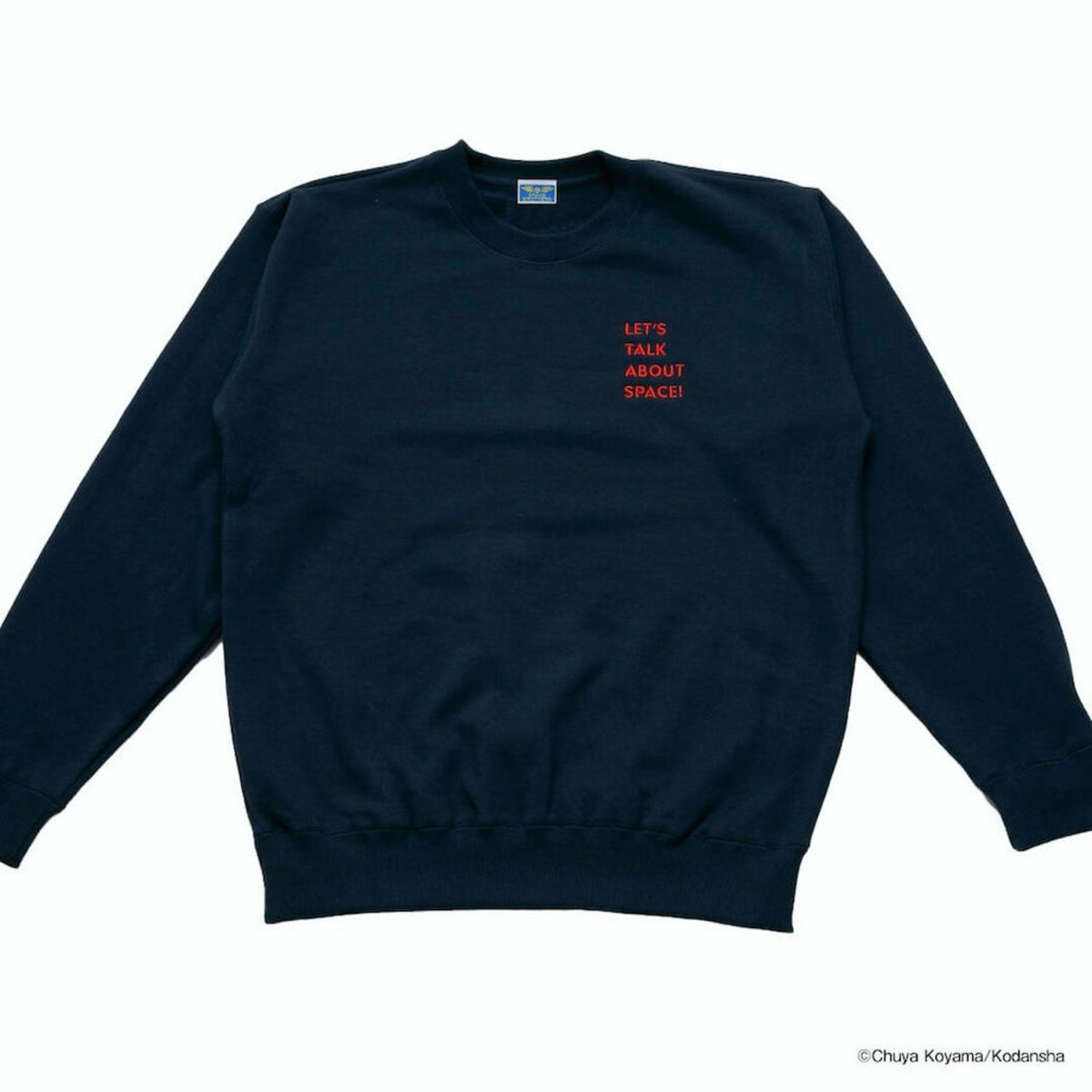 胸元には「Let’s talk about Space!」の言葉が。ムッタが宇宙飛行士選抜試験の最中に言った「宇宙の話をしよう」を英訳し、さり気なくあしらいました。パーカーを着れば、あなたもあの日のムッタのように、まっすぐに夢に向かう気持ちを確かめられるかもしれません!