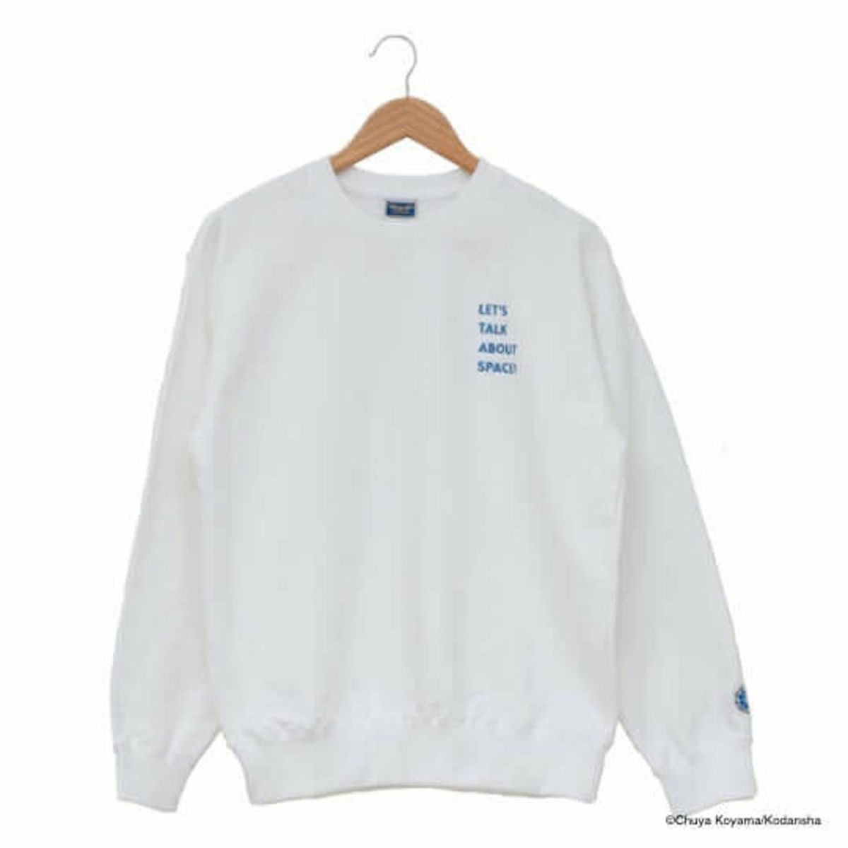 胸元には「Let’s talk about Space!」の言葉が。ムッタが宇宙飛行士選抜試験の最中に言った「宇宙の話をしよう」を英訳し、さり気なくあしらいました。パーカーを着れば、あなたもあの日のムッタのように、まっすぐに夢に向かう気持ちを確かめられるかもしれません!