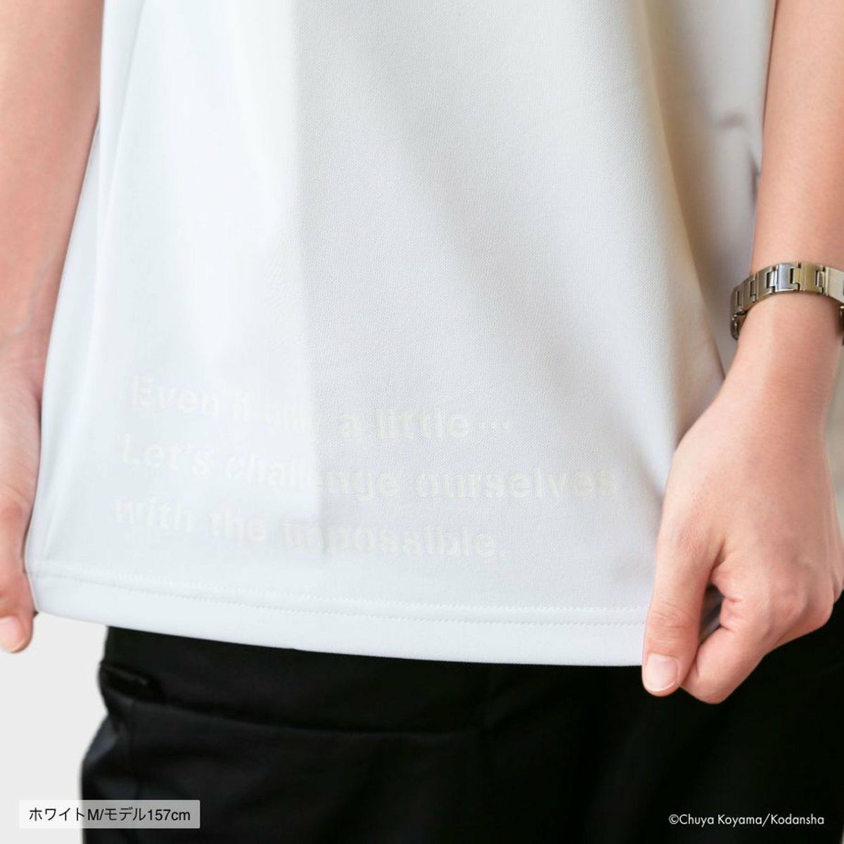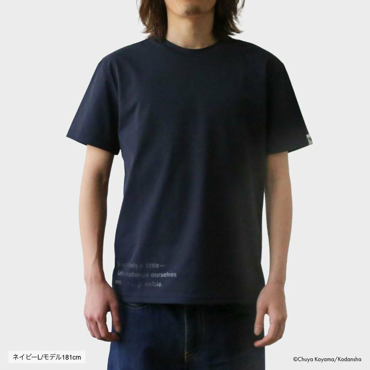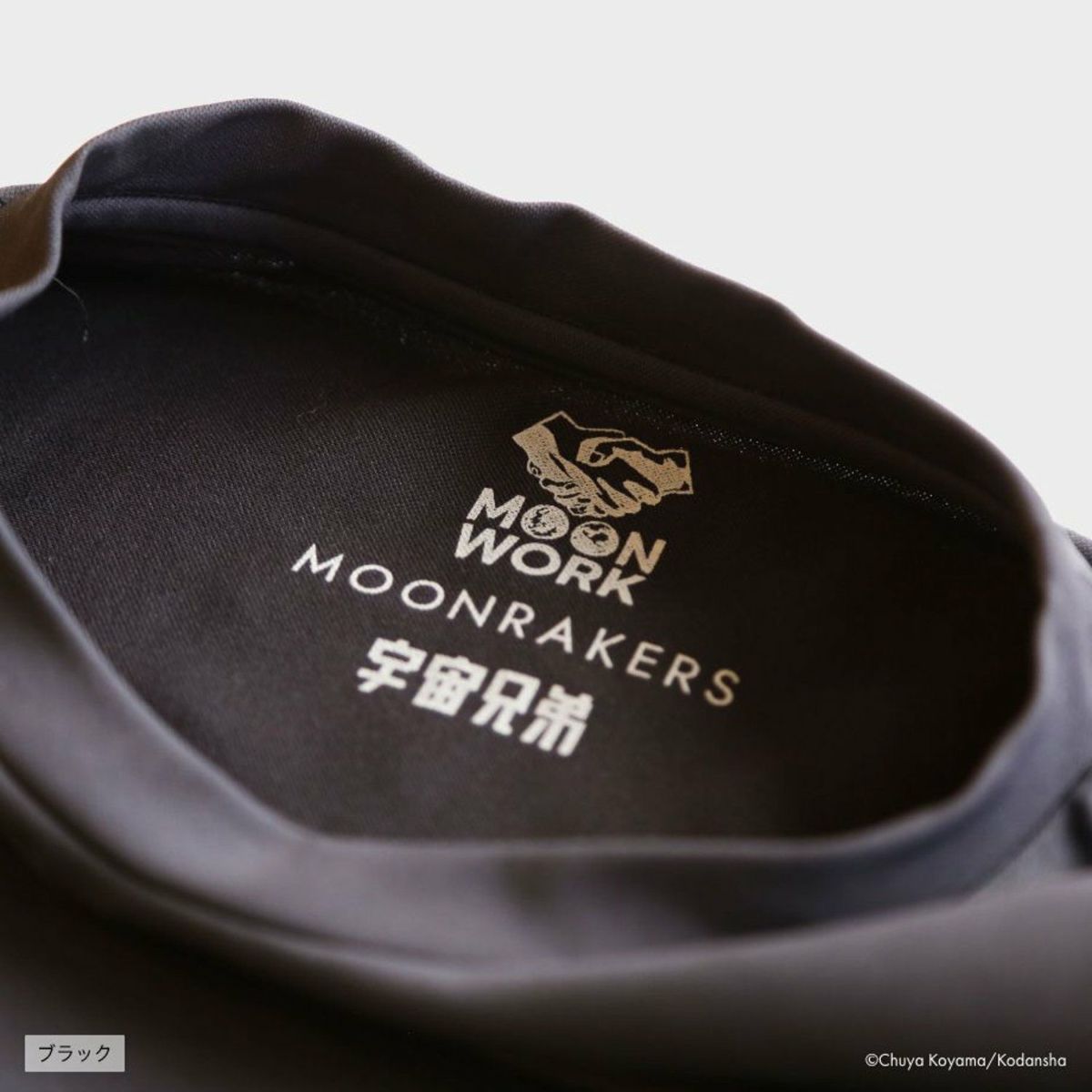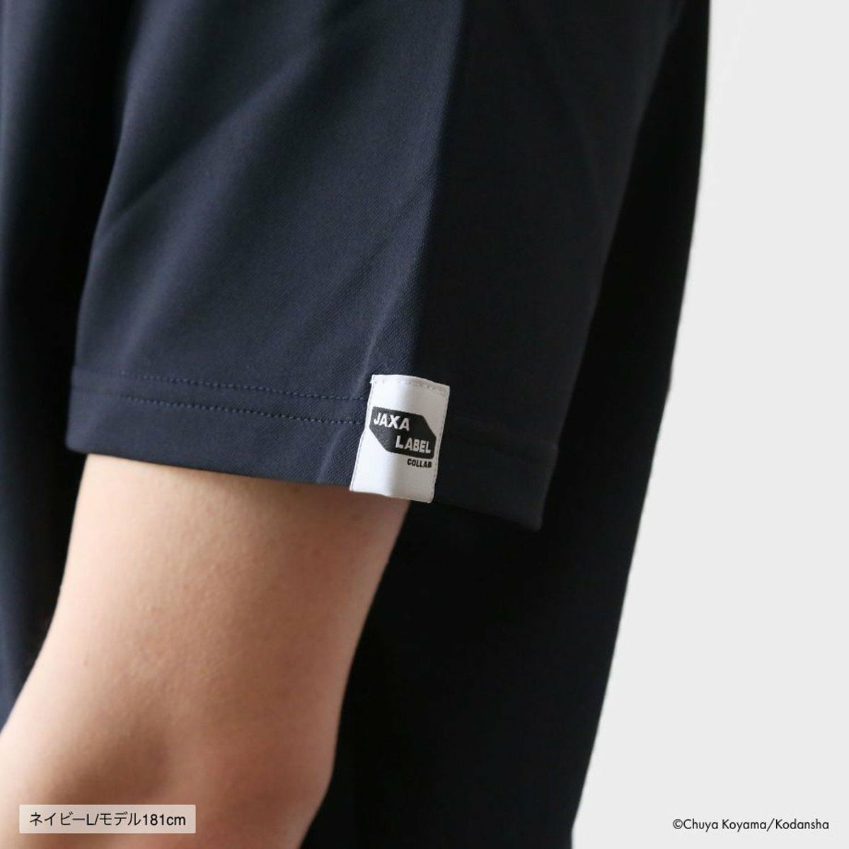 正面には、16巻のNEEMO訓練でのムッタの言葉「ちょっとだけ無理なことに挑戦してこーぜ」という文字を、さりげなくプリント。背面には、月と地球の上で固く握手を交わすロゴマークが入ります。ムッタとケンジ、ムッタとビンスとピコ、ムッタとフィリップ、JAXAの星加さんとスイングバイの福田さんなど、ひとりひとりの「ちょっとだけ無理なことへの挑戦」のときに、握手をしたり、拳を固くぶつけ合うシーンをイメージしてデザインしました。左の袖先には、JAXAとのコラボレーションをベースに生まれた商品に対し付与を許可される「JAXA LABEL COLLAB」のタグが入る特別仕様です。