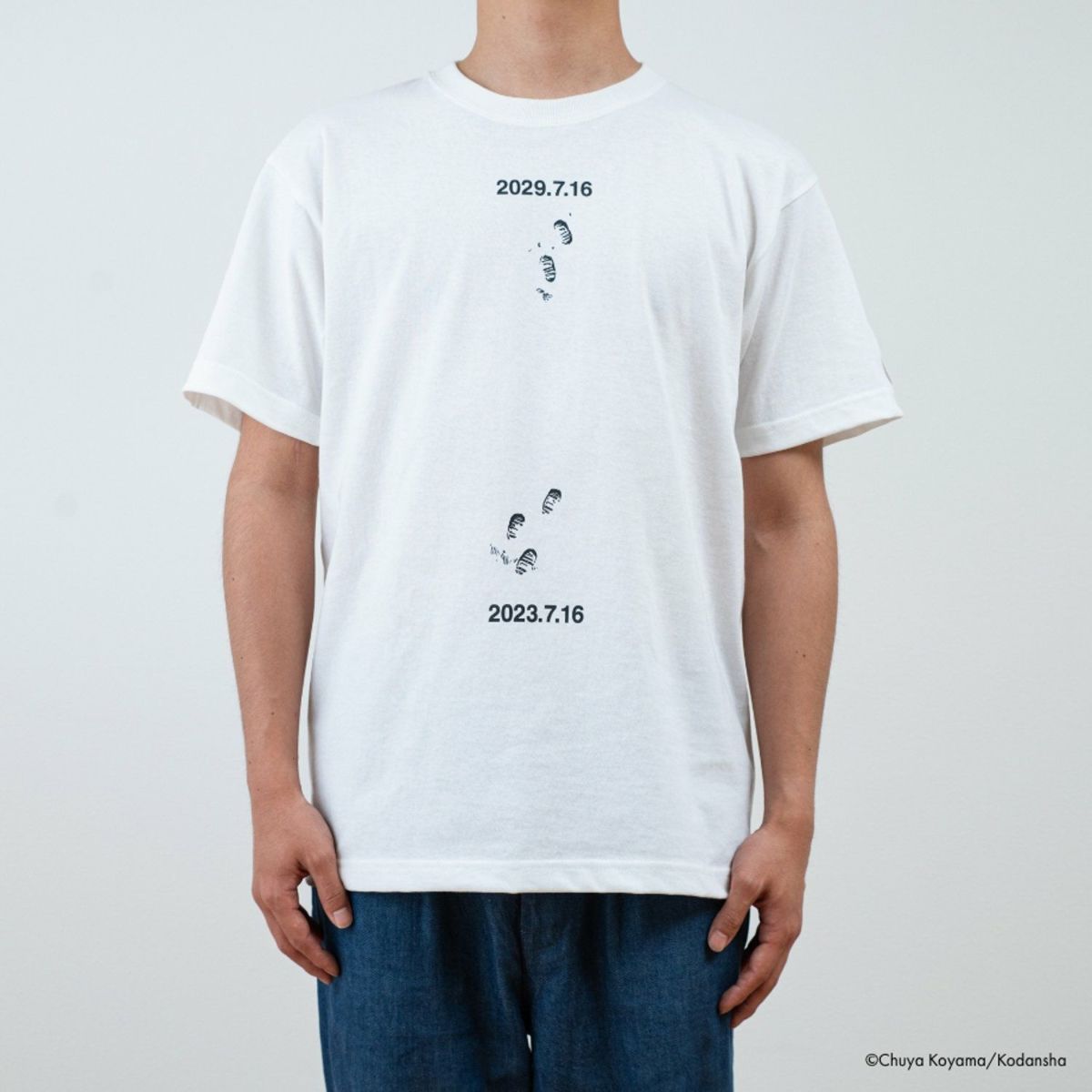 “6年後”という、遠くもあり近い未来でもある作品の中の世界に向かって、どんどん追いついていく時間も楽しめるようなTシャツを作りました!