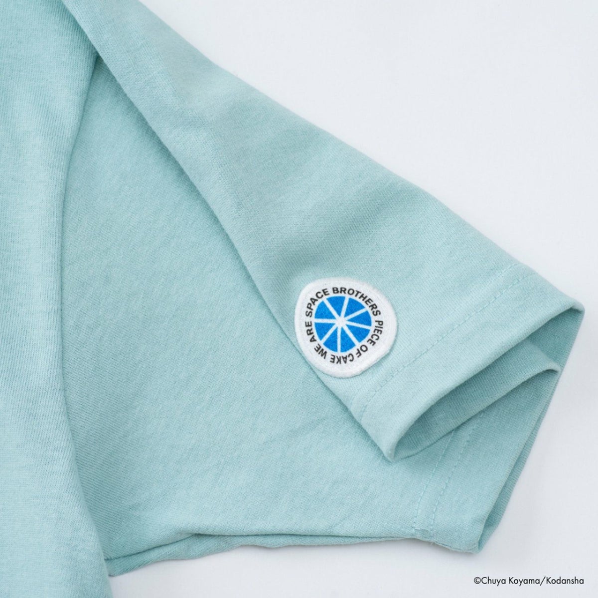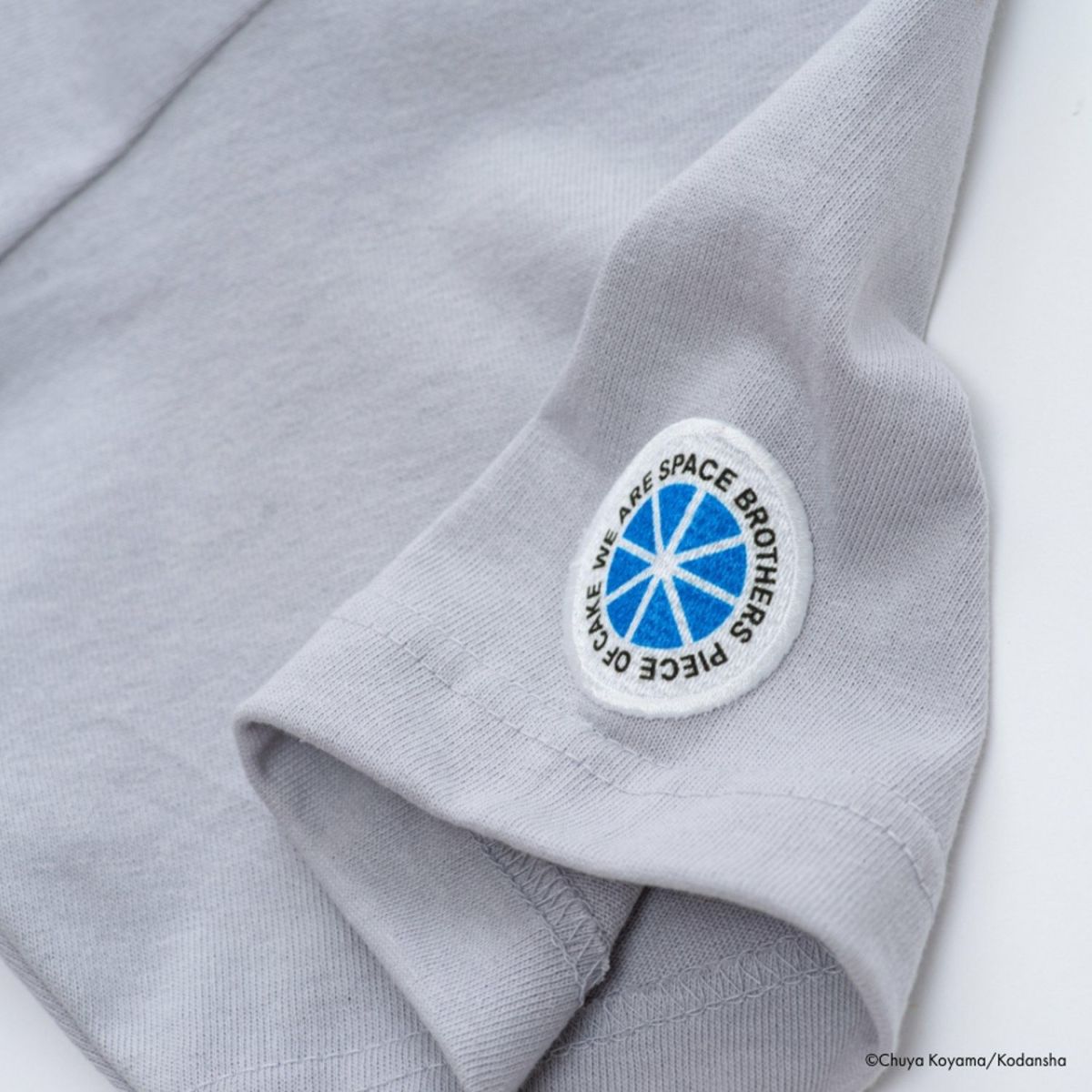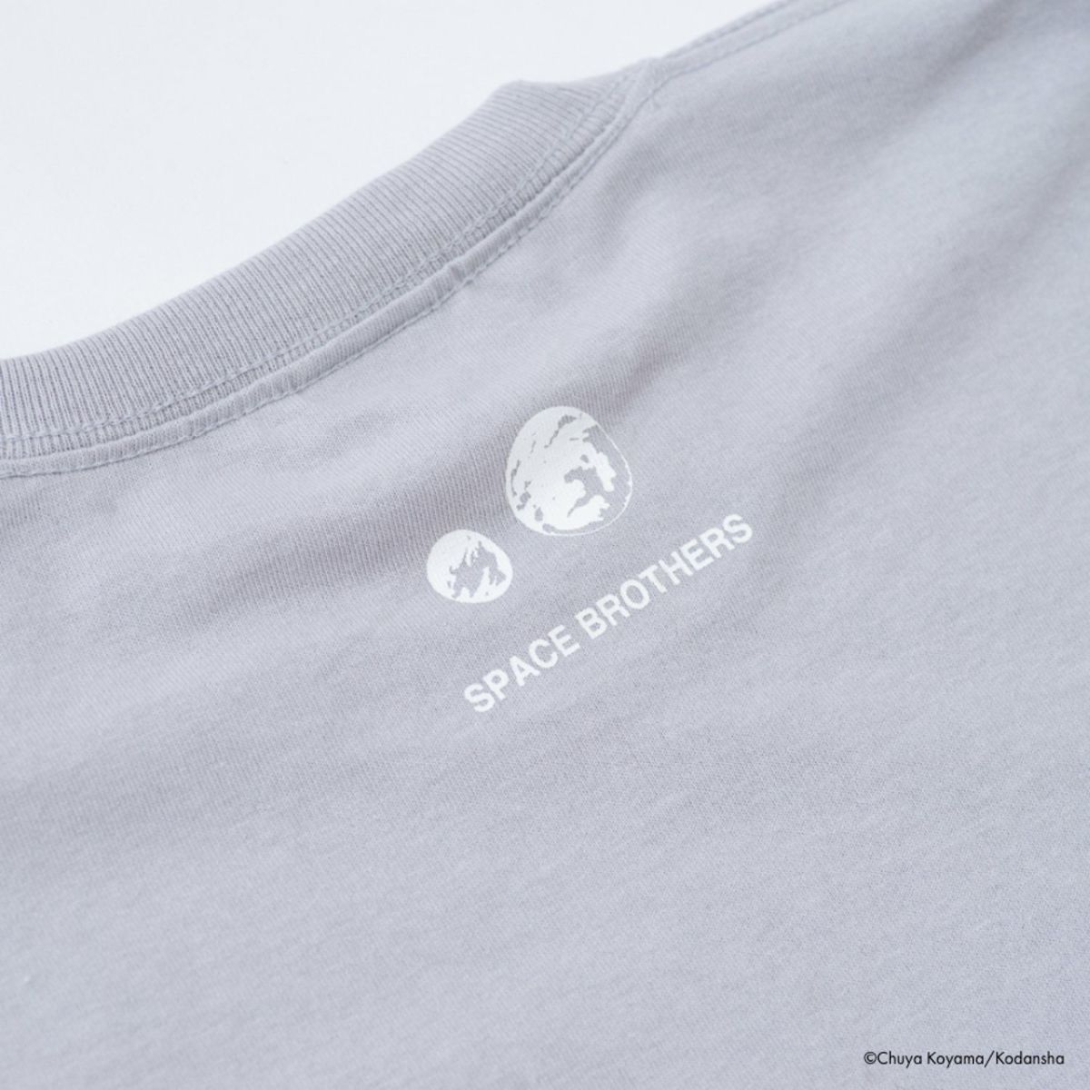 シンボルマークの1ピースをロケットに見立て、宇宙兄弟のピースひとりひとりが、同じ空を目指してぐんぐん上がっていくデザインです。裏面には、月と地球のマークをプリント。空と月面をイメージした、スカイブルーとシルバーグレーの2色で展開です。