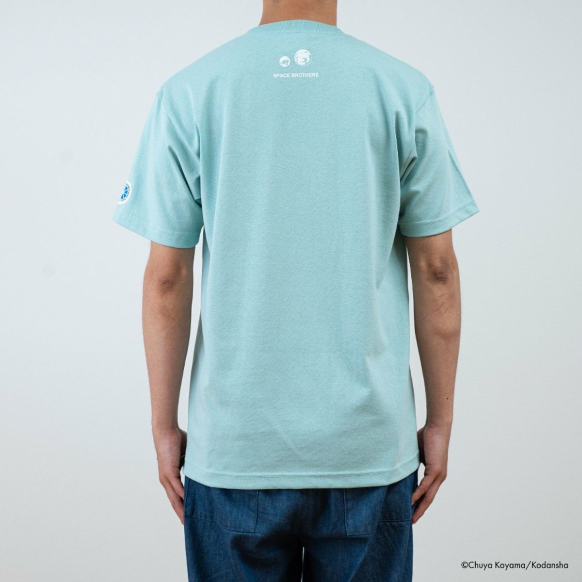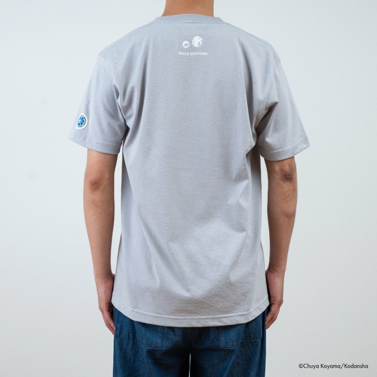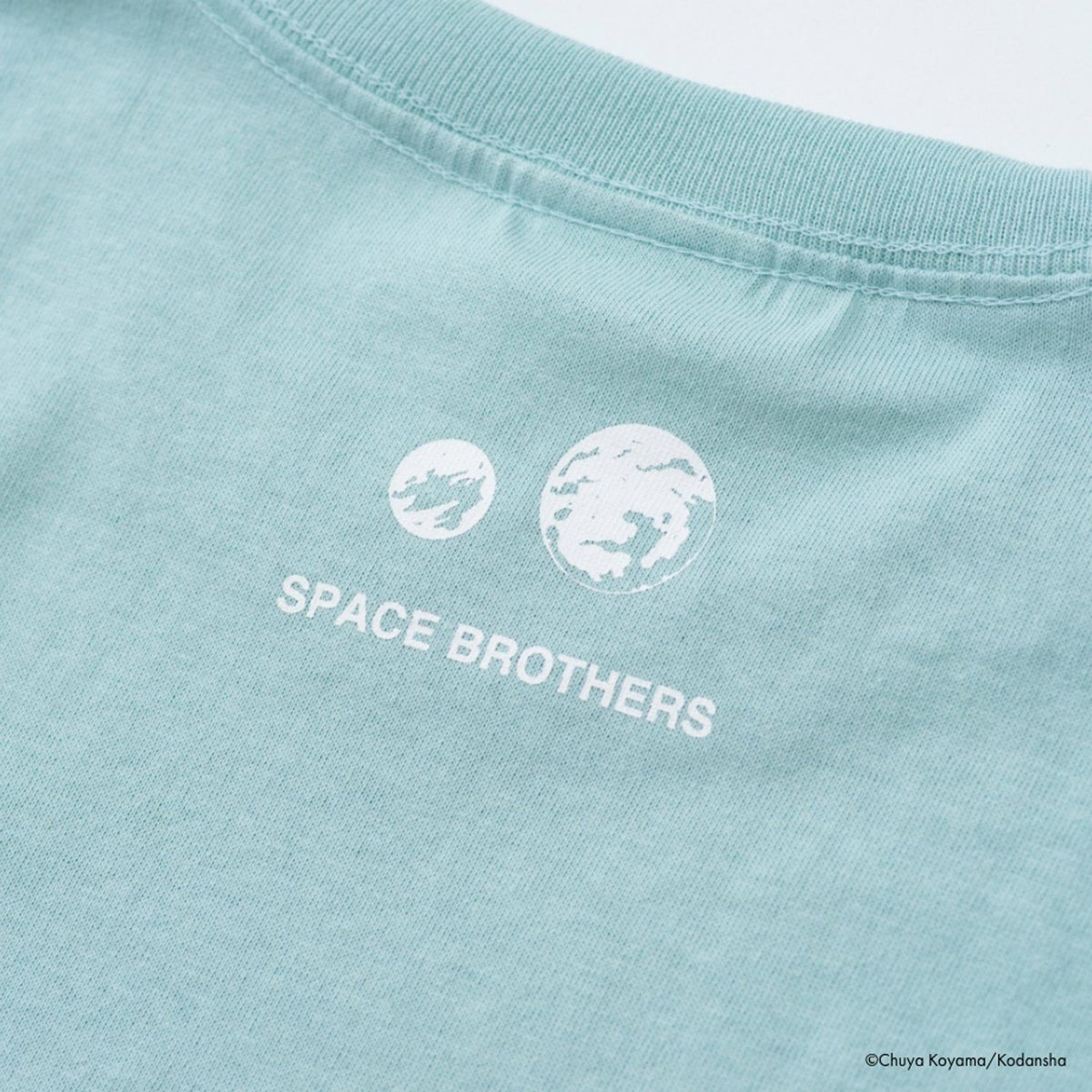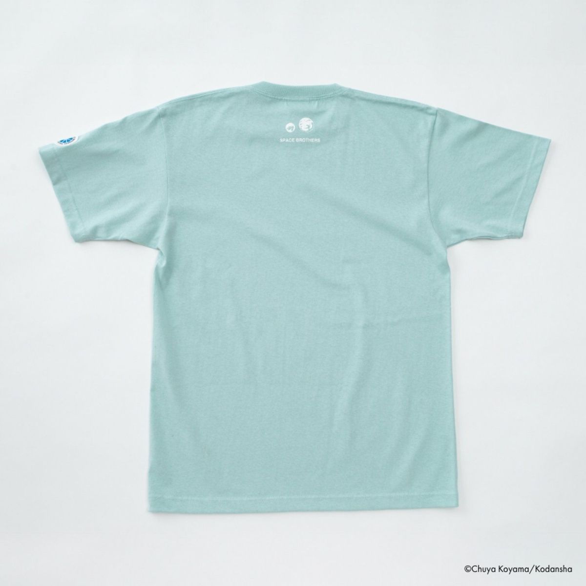 シンボルマークの1ピースをロケットに見立て、宇宙兄弟のピースひとりひとりが、同じ空を目指してぐんぐん上がっていくデザインです。裏面には、月と地球のマークをプリント。空と月面をイメージした、スカイブルーとシルバーグレーの2色で展開です。