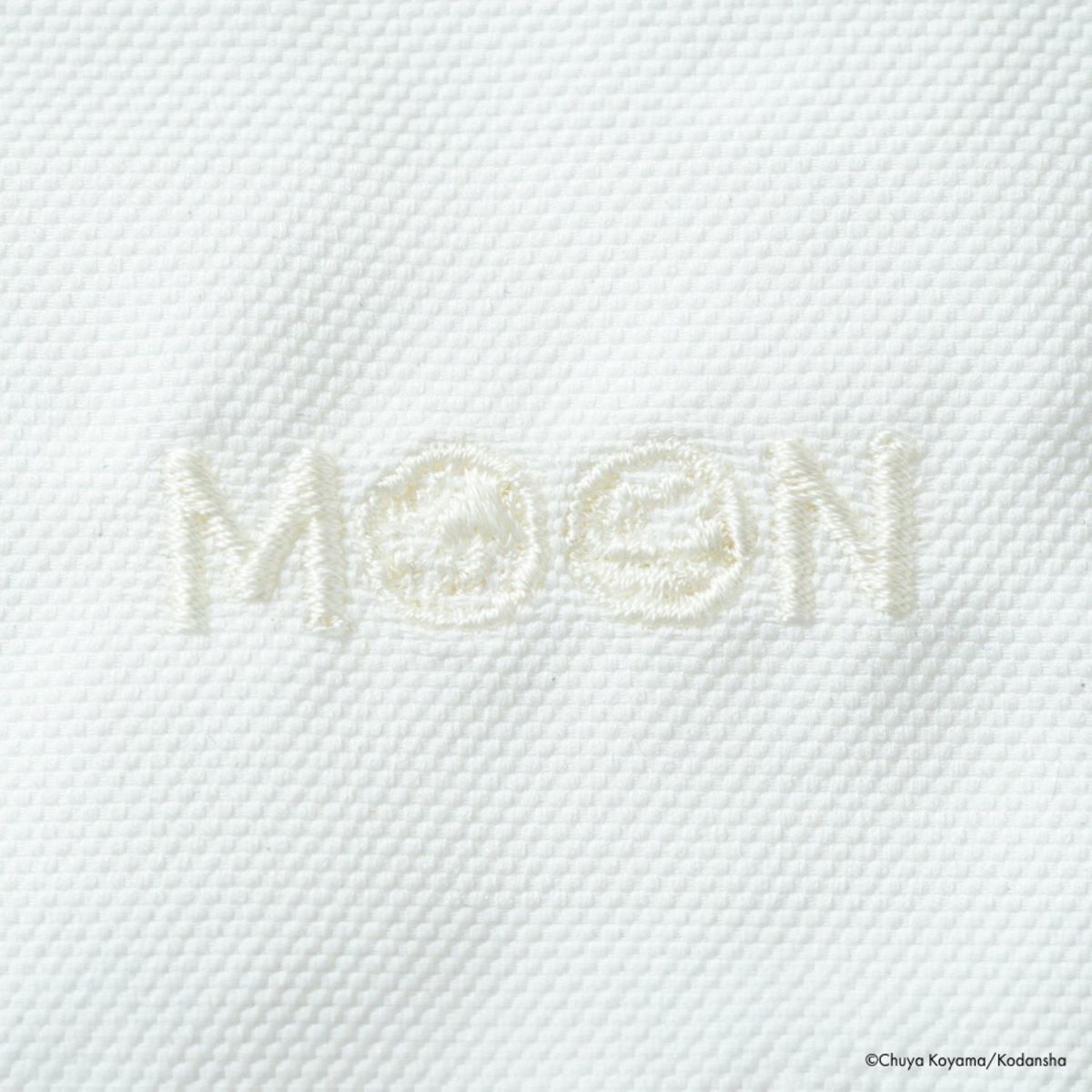 1巻に出てくるシャロンの言葉を受けて、大人になってから、自身の金ピカに向かって走るムッタ。金ピカを見失いそうになってしまうとき、ムッタのように思い出すことができたらと、襟裏タグと手元に月をデザインしました。いつでもそばに金ピカを置いて、前に進む力となりますように。