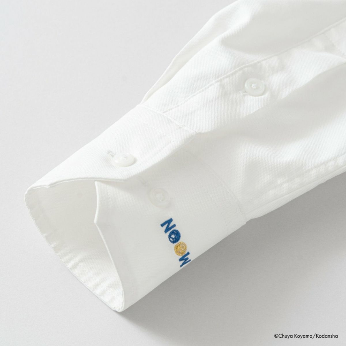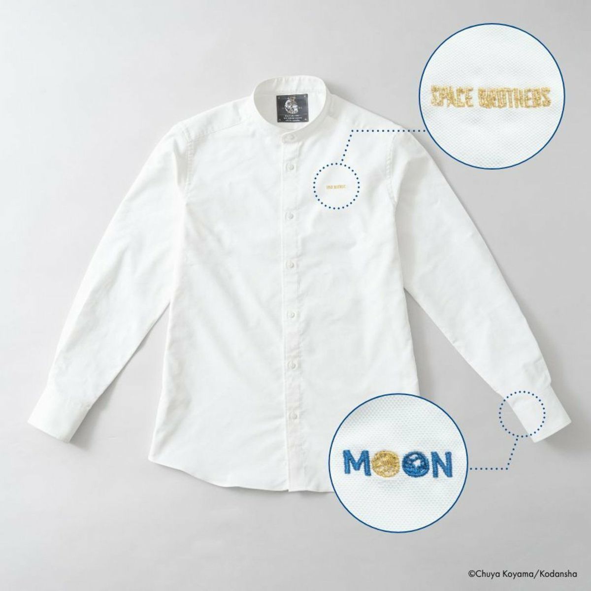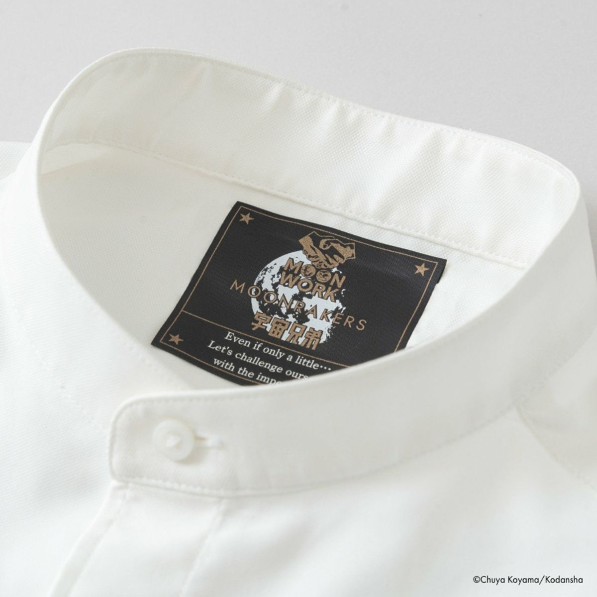 1巻に出てくるシャロンの言葉を受けて、大人になってから、自身の金ピカに向かって走るムッタ。金ピカを見失いそうになってしまうとき、ムッタのように思い出すことができたらと、襟裏タグと手元に月をデザインしました。いつでもそばに金ピカを置いて、前に進む力となりますように。