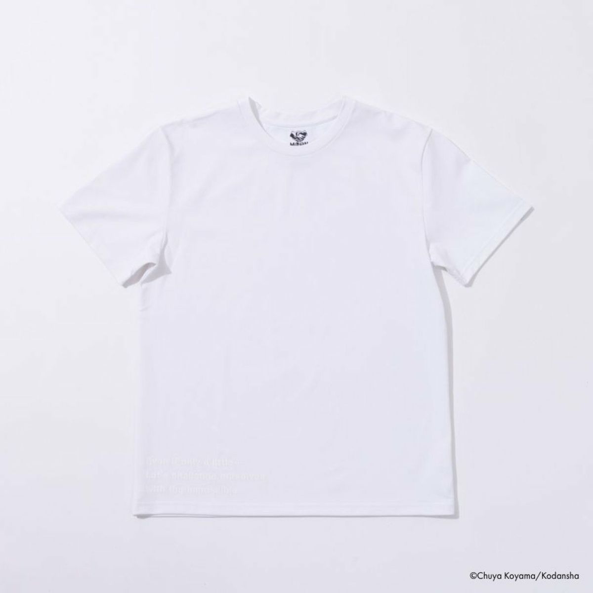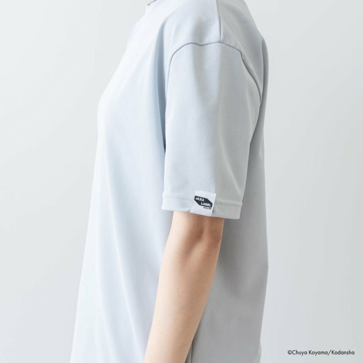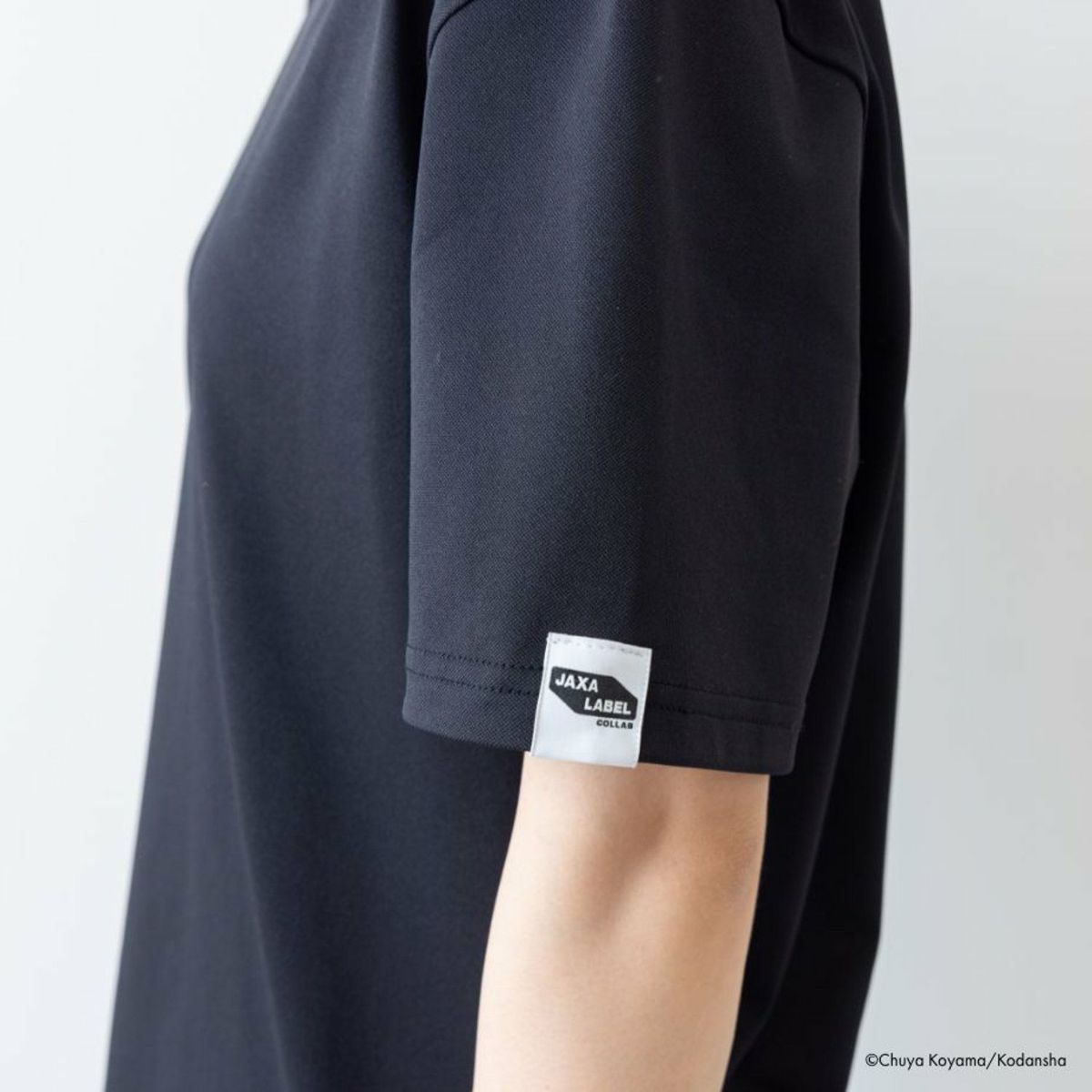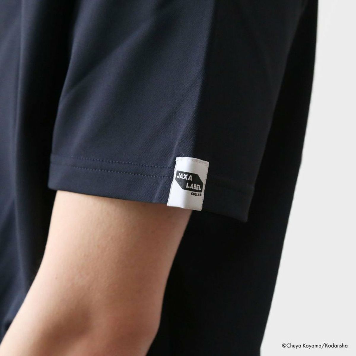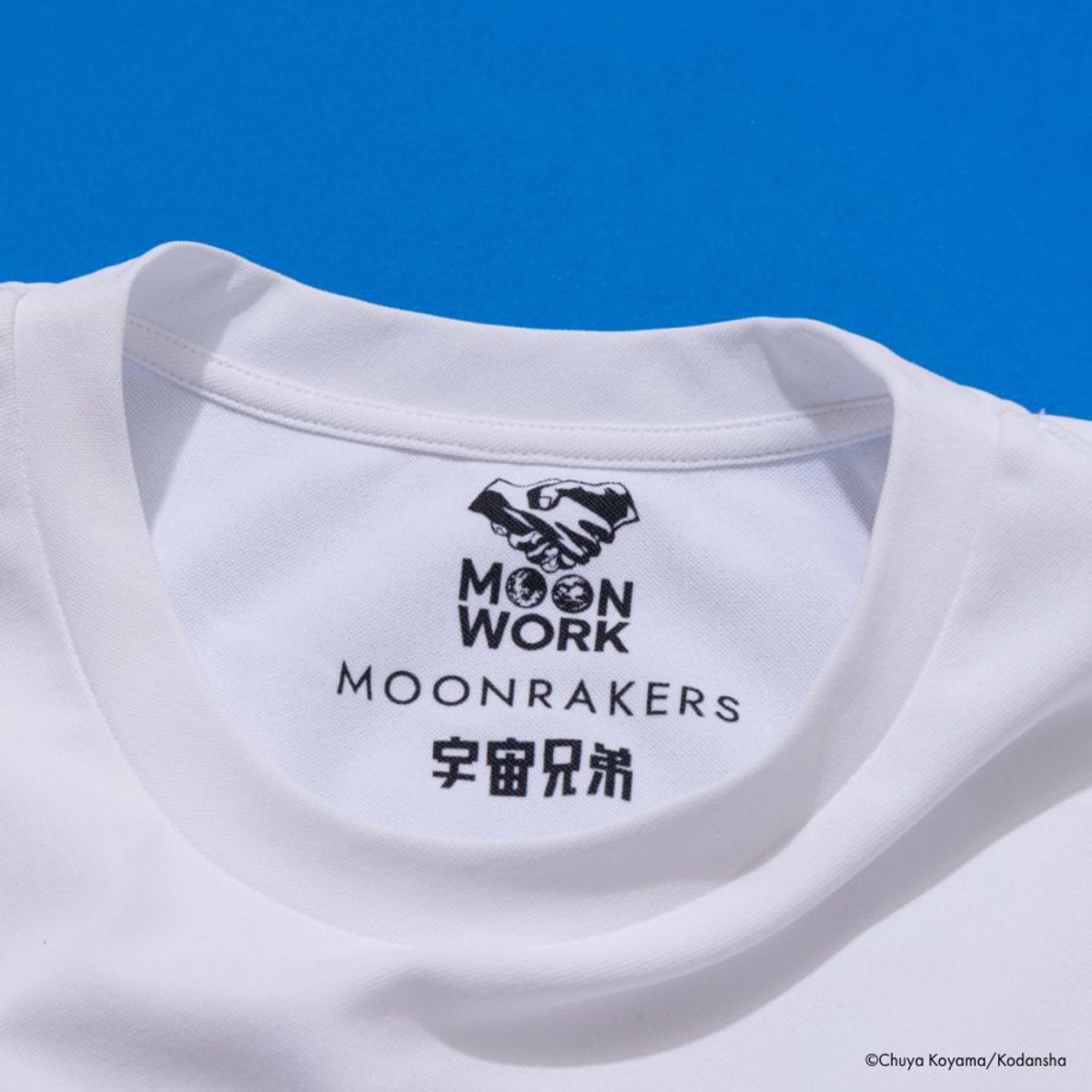 正面には、16巻のNEEMO訓練でのムッタの言葉「ちょっとだけ無理なことに挑戦してこーぜ」という文字を、プリント。襟裏には、月と地球の上で固く握手を交わすロゴマークが入ります。左の袖先には、JAXAとのコラボレーションをベースに生まれた商品に対し付与を許可される「JAXA LABEL COLLAB」のタグが入る特別仕様です。夢を追いかけて勉強するとき。ハードな訓練。地道なものづくり。ヘヴィーな交渉ごと。汗をかいてしまうような頑張る場面。そうした「挑戦」のシーンで身につけていただけるようなワークウェアに仕上げました。