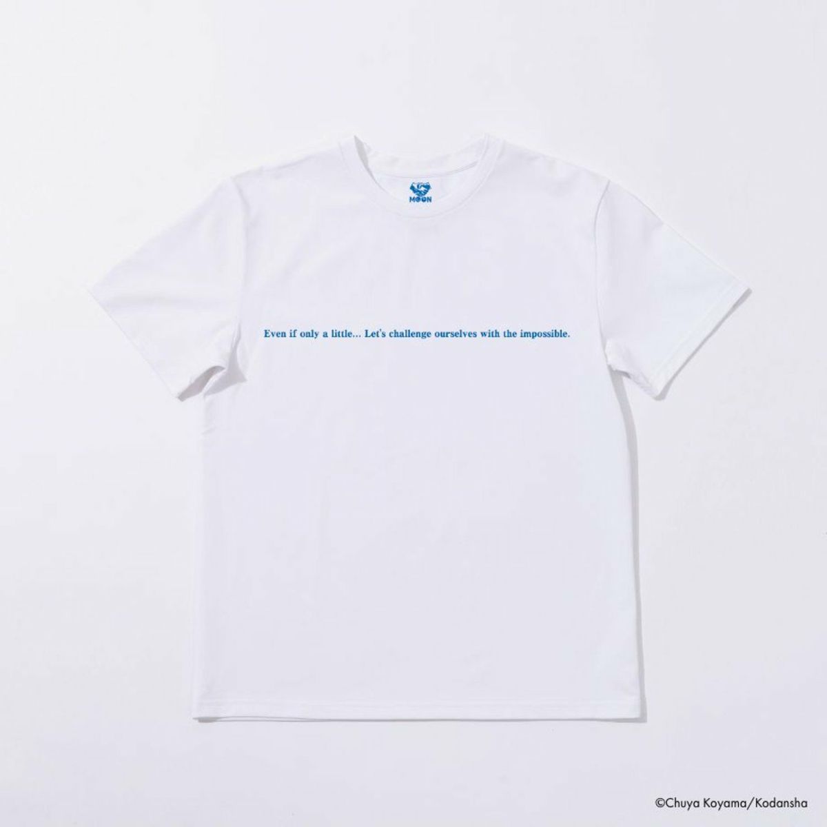 NEEMO訓練カラーバージョンは、16巻のNEEMO訓練でのムッタの言葉「ちょっとだけ無理なことに挑戦してこーぜ」の英文を、訓練着の爽やかなブルーで際立たせた新デザイン。襟裏のロゴもブルーで鮮やかに。