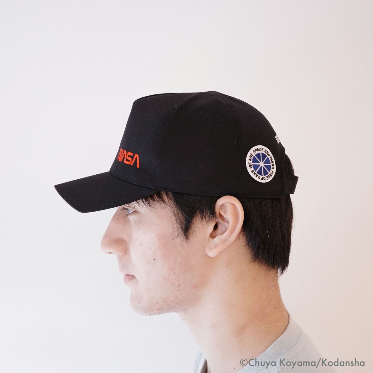 この別注モデルには、NASAのロゴ刺繍とSPACE BROTHRTSロゴ刺繍、そして宇宙兄弟作中に登場するシンボルマークワッペンをあしらいました。宇宙兄弟のキャラクターたちと現実の宇宙開発に挑む人々をひとつに結び、“誰もが宇宙兄弟(スペースブラザーズ)の一員である”ということを思い出させてくれるストーリーをデザインに込めました。宇宙兄弟ファンはもちろん、宇宙を志す人や支える人、憧れる人も、同じキャップをかぶることで「宇宙に携わる仲間」という一体感を共有できます。