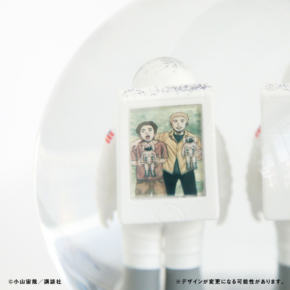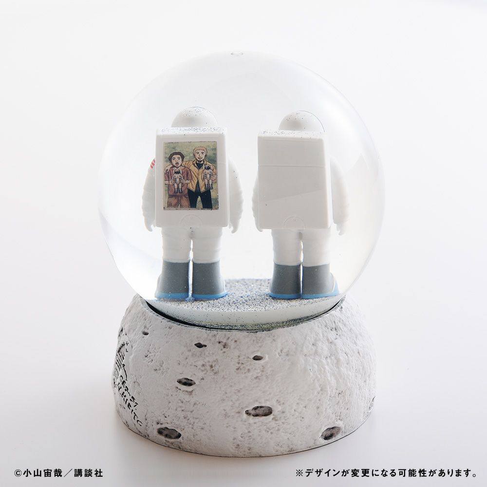 1969年7月にアポロ11号が月面に着陸してから50年。それを祝して、『宇宙兄弟』作品内で月面に佇む2体の人形を、キラキラ光るドームに封じ込めてお届けします。