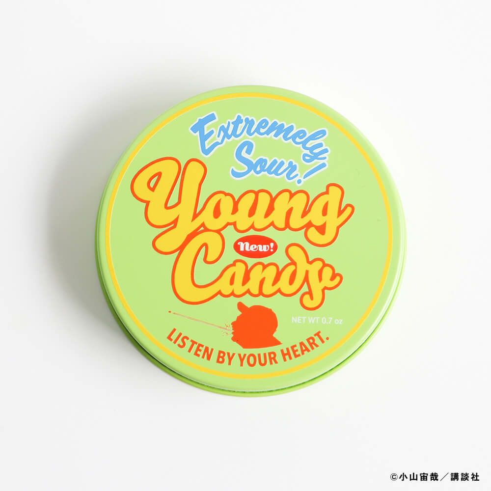 作中で 「最初の30秒しかウマくない」と言いながらヤンじいが舐めている あのキャンディ。 「最初の30秒しかウマくない」って どんなキャンディなんだろう? と想像を膨らませて、 「30秒で味が変わる」オリジナルキャンディをつくりました! アメリカンな缶に入った不思議なヤングキャンディ。 ぜひ、ひとつは ヤンじいのように、「ぷっ」としてみてください! ・原材料名 砂糖、水飴、調味料 ・内容量  10粒 ・賞味期限 2020年7月 ※ 直射日光、高温多湿を避けて保存してください