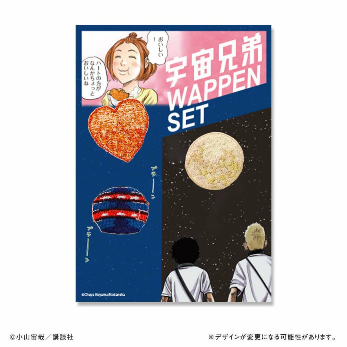 宇宙兄弟 2way刺繍ワッペンセット ムッタとヒビトの月&手作りUFO&たぶさんのハートコロッケ