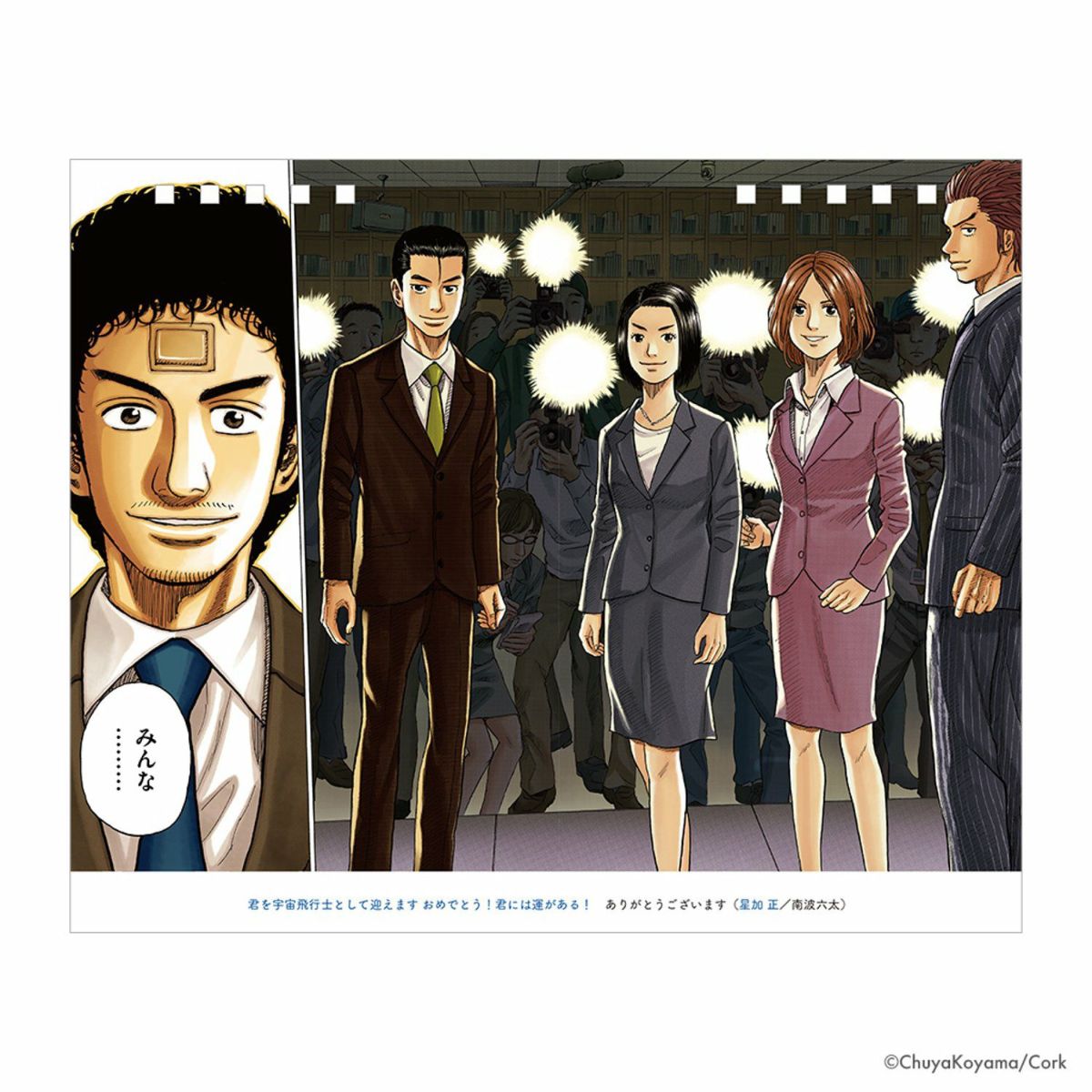 裏面には、作中の珠玉の1シーンをデザイン。『宇宙兄弟』お馴染みの特製カレンダーシールで、自分だけのカレンダーにアレンジすることができます。