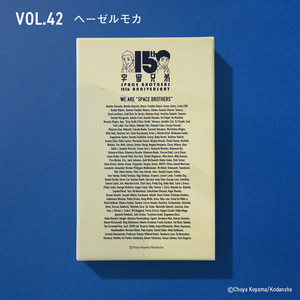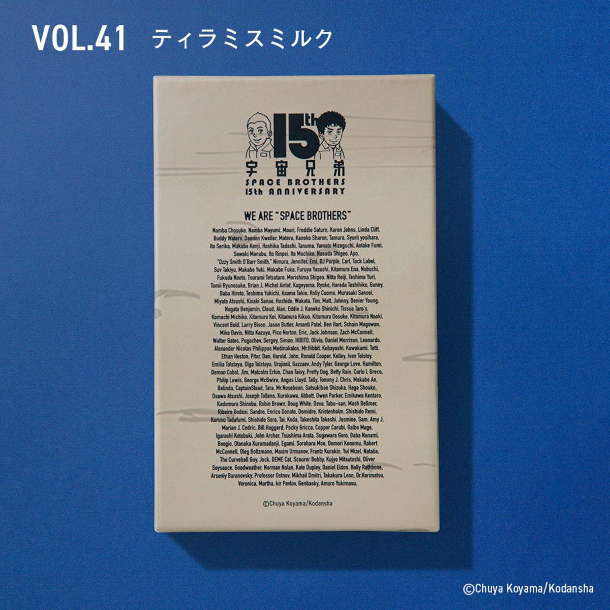 「vol.41ver.」には、連載15周年記念のメインビジュアルにも採用されているイラストを使用しました。40巻のムッタのセリフ「We are “Space brothers”(僕たちは“宇宙兄弟”です)」。裏面には、ムッタがそのセリフで思い描いている、彼らを支えてくれた家族や宇宙開発に携わる『宇宙兄弟』たちの名前が並んでいます。
