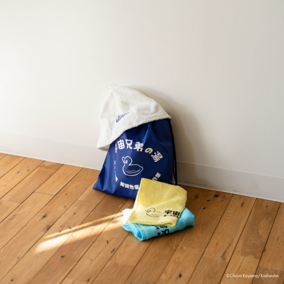 1巻に登場するアヒルちゃんマークをモチーフに、銭湯風のタオルを作りました!