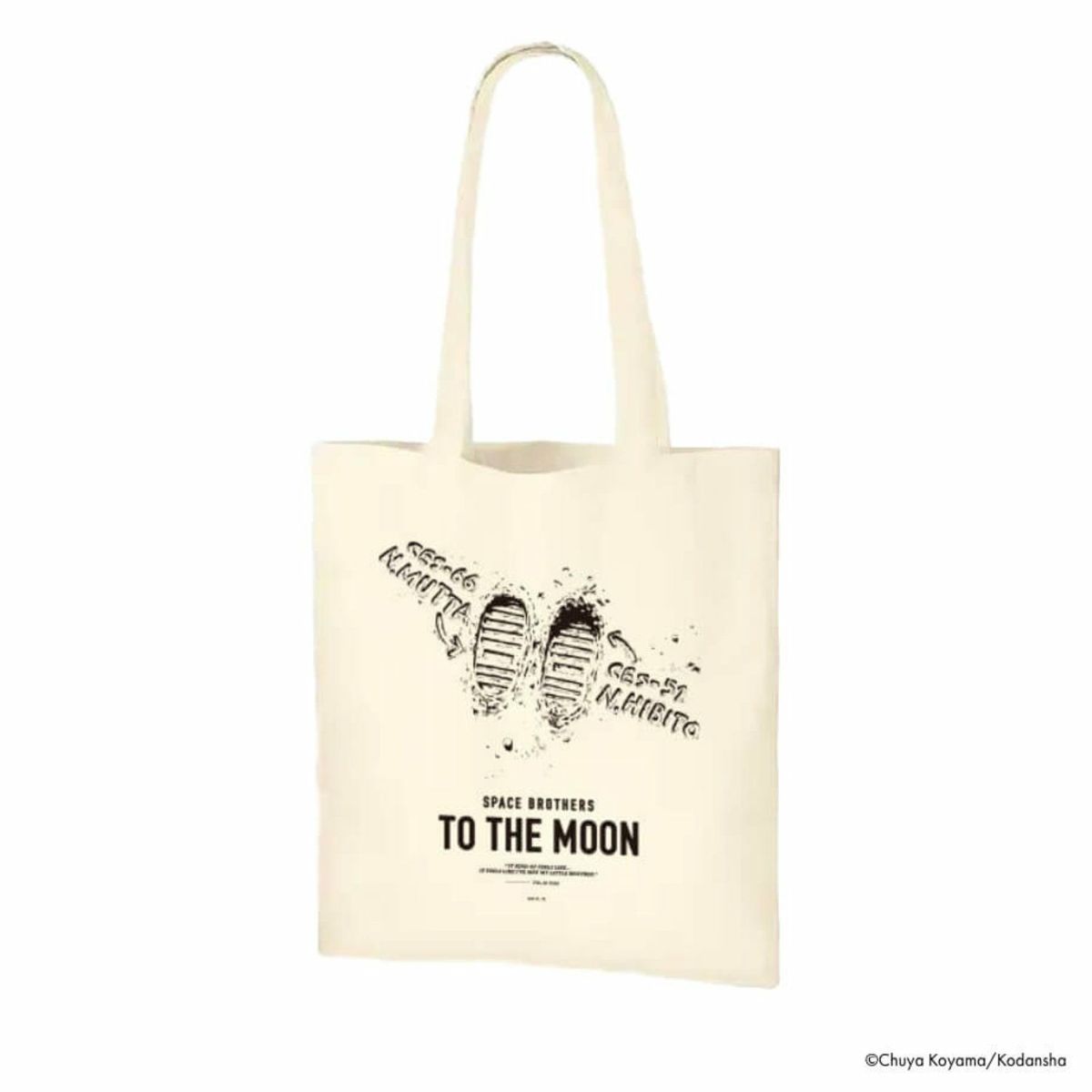「宇宙に行きたい」と少年時代に思い描いた夢、夢をリアルなものに実現させた物語を思い起こさせる、ムッタとヒビトの月面足跡をプリントしたトートバッグです。