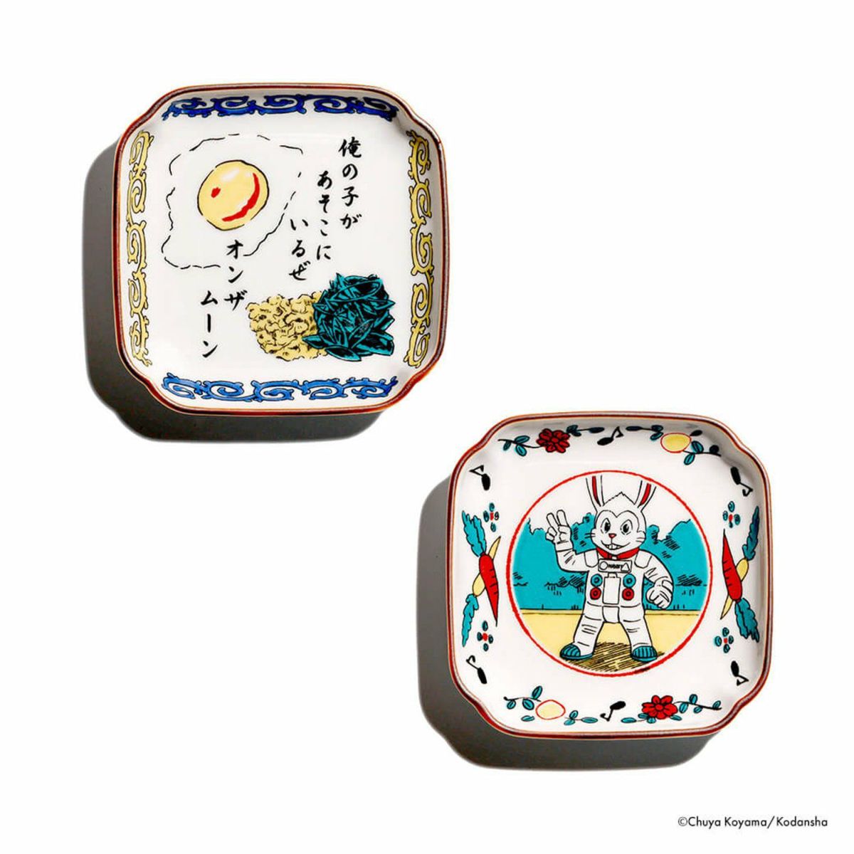 「月に並ぶ兄弟編」は2組の兄弟の長角皿を、「月のうさぎと月見うどん編」ではコミカルな絵柄の小皿をそれぞれ2枚セットに。数量限定での販売です。