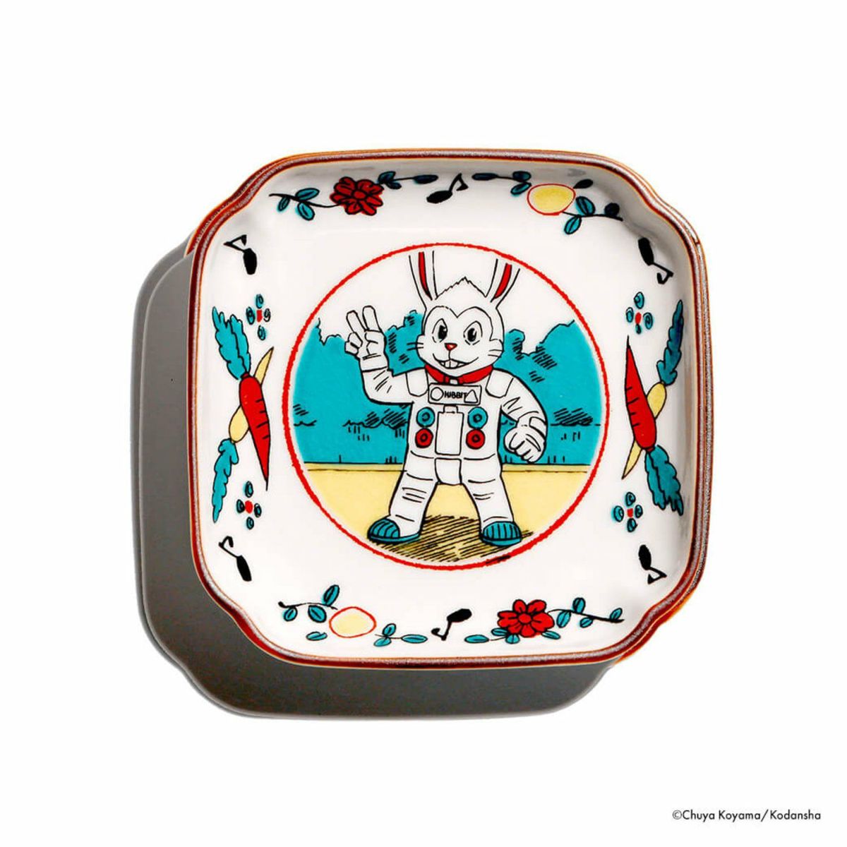 ヒビトをモデルにしたアニメキャラクター「Mr.ヒビット」も小皿に!中央には、「イエ~イ!」と声が聞こえてきそうなヒビット。その周りのフレームには、ニンジンや音符など、ヒビットからイメージされるアイテムが散りばめられています。ヒビットから元気と勇気をもらえること間違いなし!?