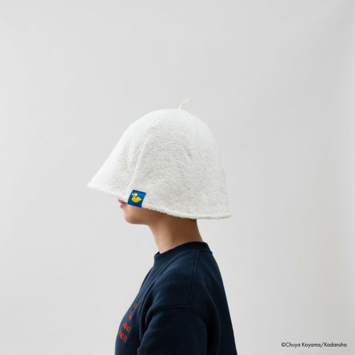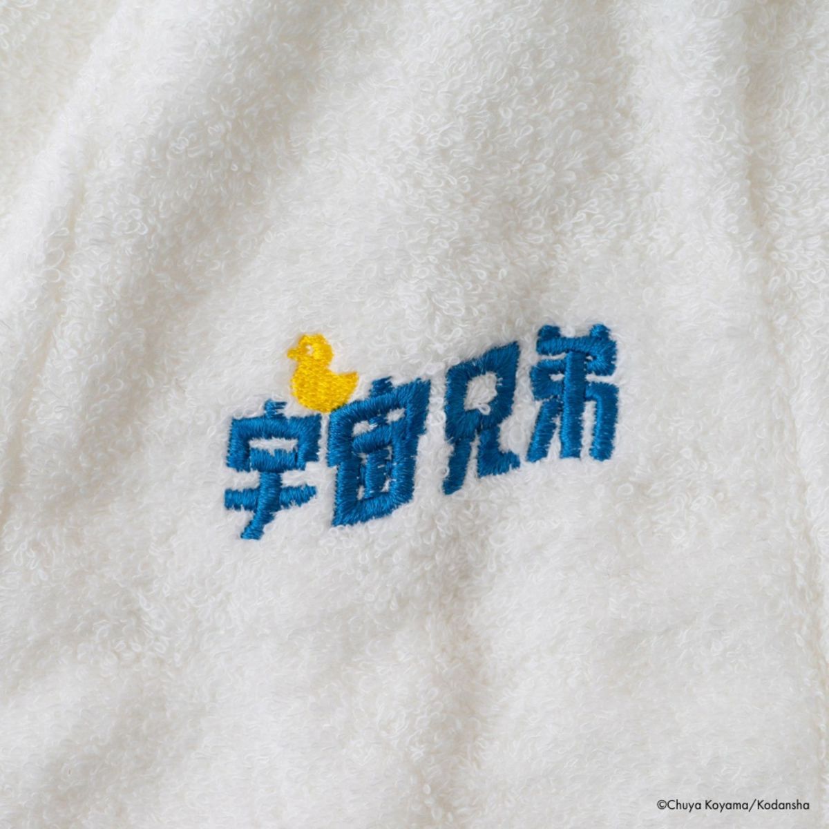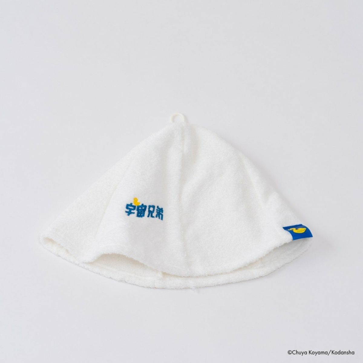 ゆる〜くお湯に浸かってリラックスをしている『宇宙兄弟』ロゴとアヒルちゃんネームタグで、さりげなく、サウナ室で宇宙兄弟グッズをアピールできる商品です。