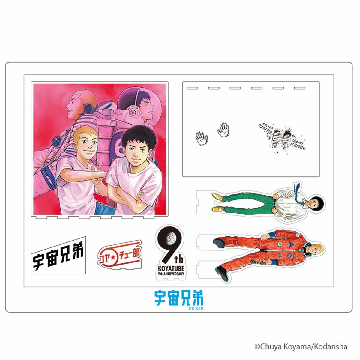 1巻表紙、そして40巻表紙の子供時代と宇宙服姿のムッタとヒビトを飾れるデザイン。南波兄弟の3時代ぶんの時の流れを楽しむことができるメモリアルなアクリルスタンドです。