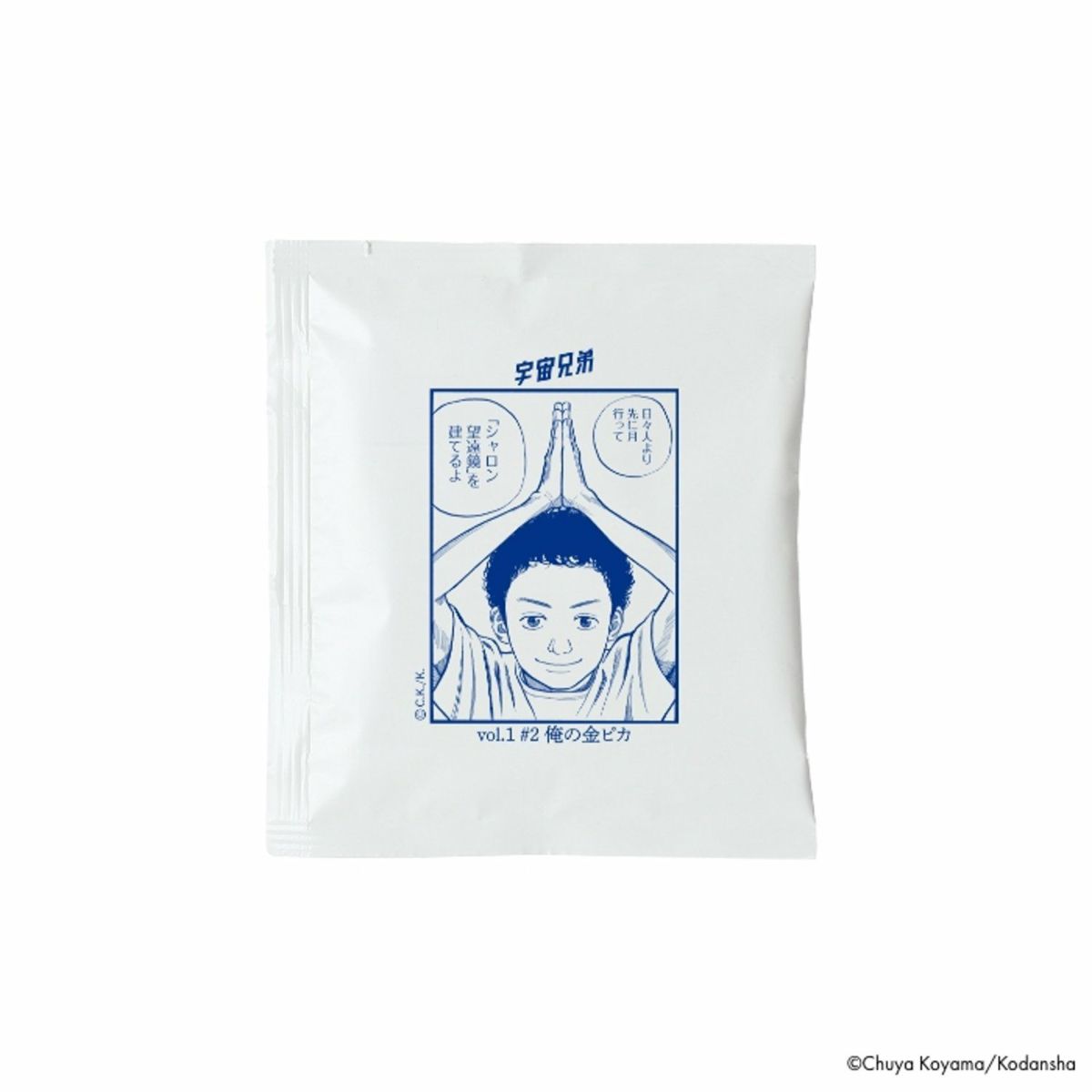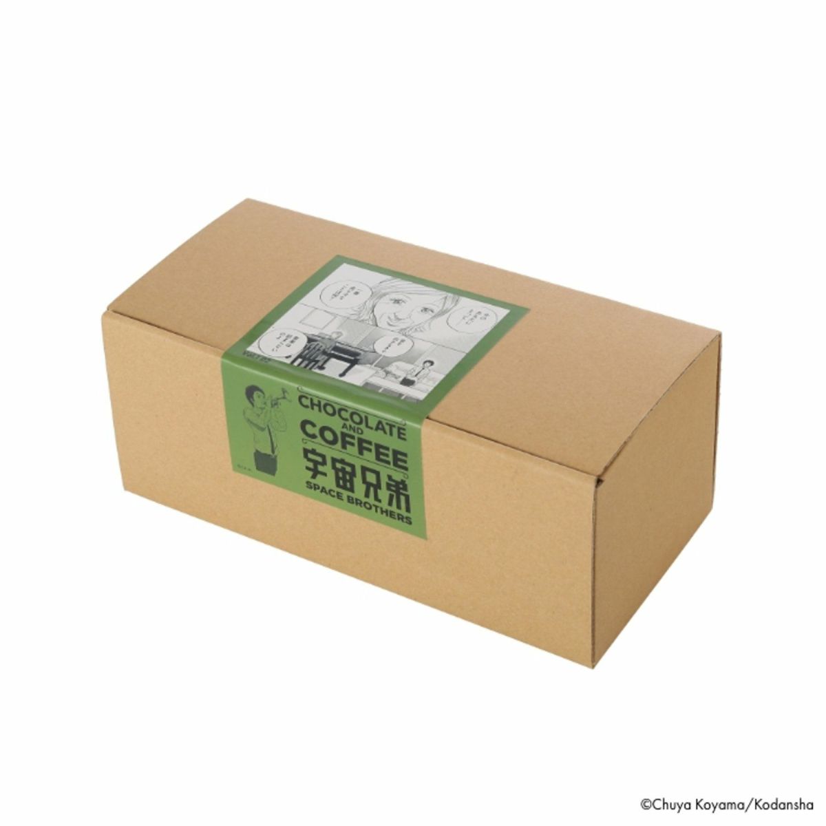 夢への気持ちを思い出し、道なき道へこれから挑戦していくムッタの姿と、難しいことにどんどんチャレンジしていた子どもの頃のムッタを、マグカップの両面でデザインしました。2話のパッケージに包まれたコーヒーは、苦味と一緒に清々しいすっきりした味わいが広がる「タイ」のマイルドローストを。宇宙兄弟ロゴに包まれたコーヒーは、クランチチョコレートに合う熟成されたコクの「エチオピア」ダークローストを選びました。