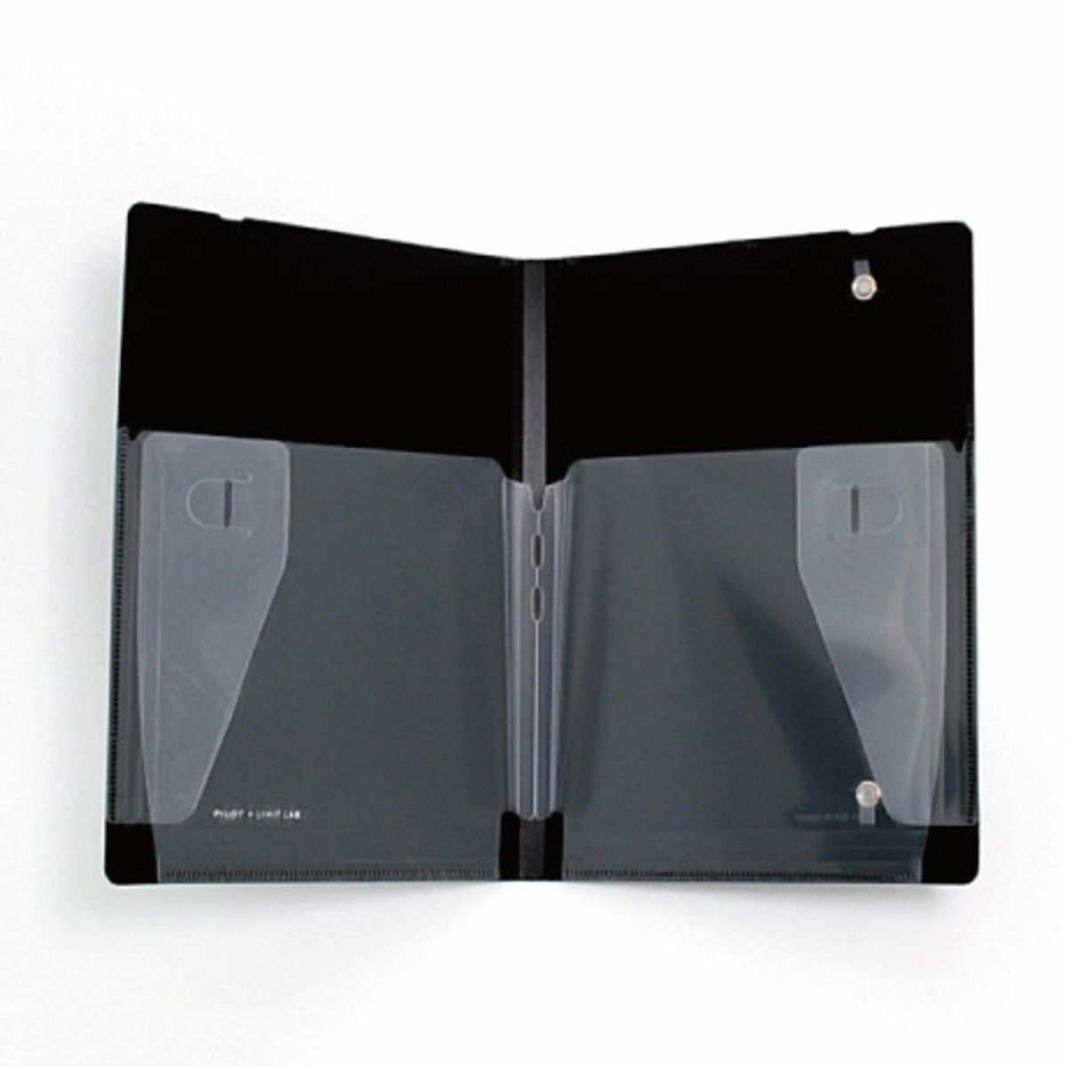 A4サイズの書類やパンフレットを2つ折にして半分サイズで持ち歩き可能なフォルダのスリム&多機能タイプです。内側には便利なポケット、表にはゴムバンドを装備。