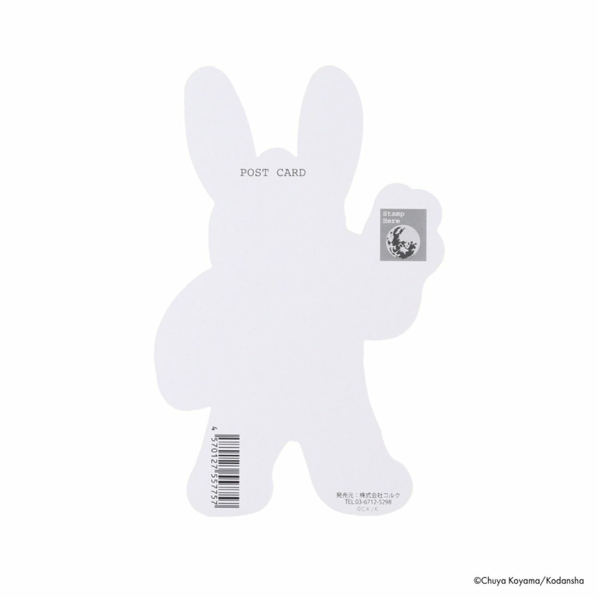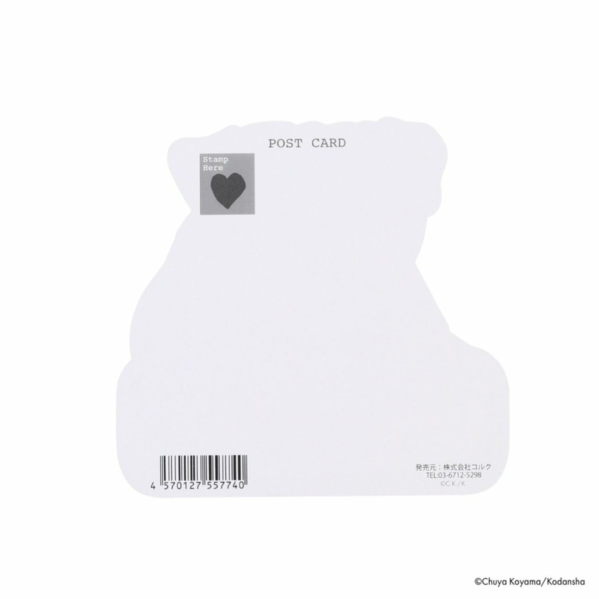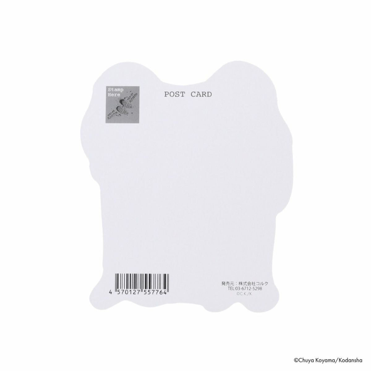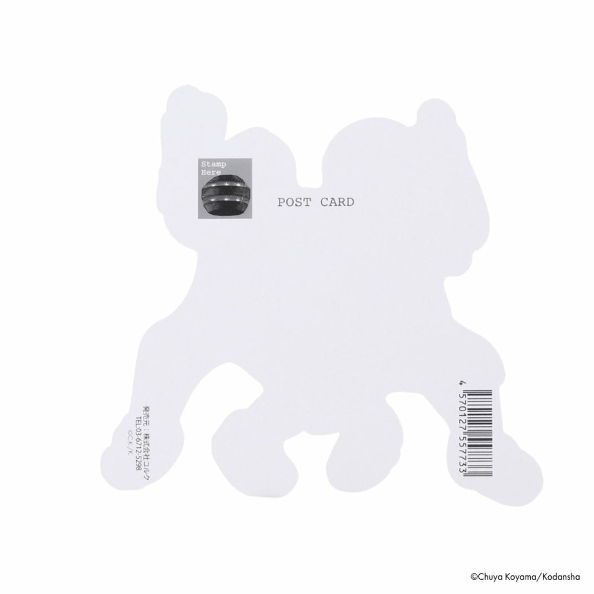 キャラクターの形に切り抜かれた躍動感あふれるポストカードです。