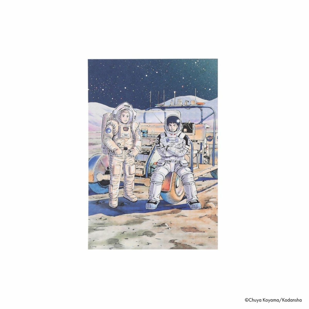 ムッタとヒビトが月面で撮影した記念写真。そんなシーンが描かれた「モーニング」の表紙をデザインしたポストカードです。
