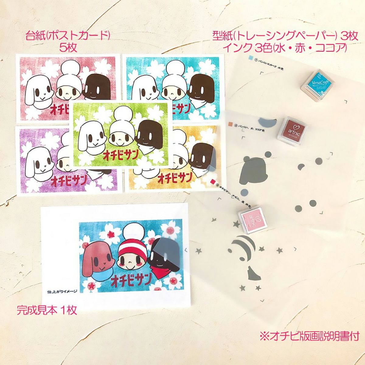 オチビサンの制作技法を簡単に体験できるキット「オチビ版画」を作りました。