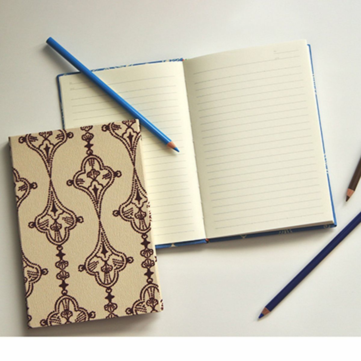 さらりとしたちりめん地のポリエステル生地をハードカバーの罫線ノートに仕上げました。