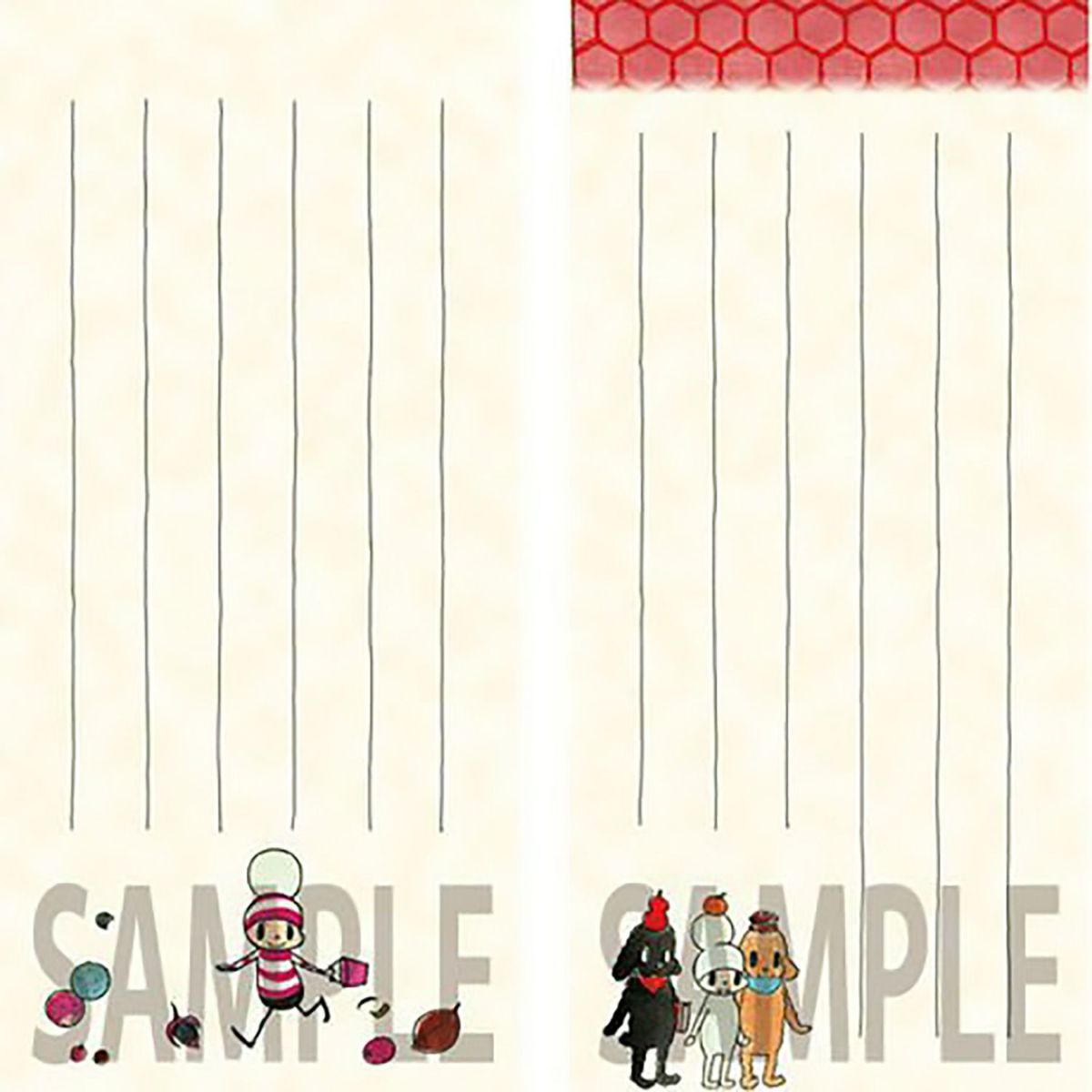 誰かにちょっとありがとうを言いたいとき、元気かな?と思ったとき、頑張ってねの一言をさりげなく伝えたいときにおすすめの一筆箋。和のイメージを活かした縦書き、ゆったりとした罫線入りで大らかに書き込めるタイプ。2柄ずつ入っています。豆粒町の春と、オチビサンたちの“のんびり生活”に、心をこめたメッセージを添えて、大切な方へ送ってみませんか?