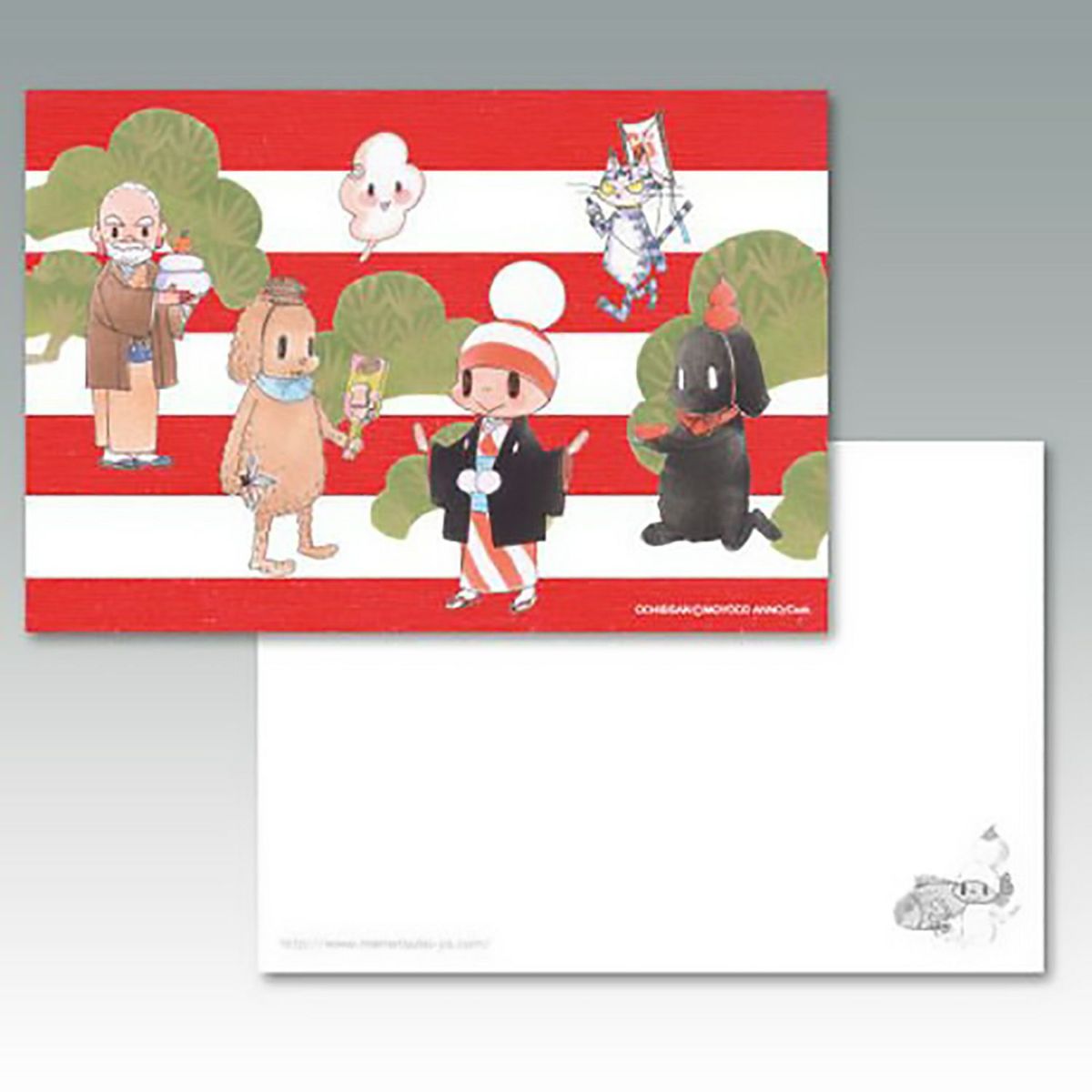 紅白が華やかな、オチビサンのお正月ポストカード。