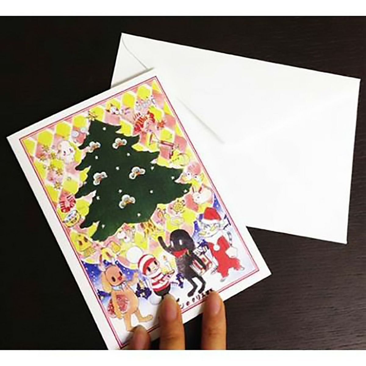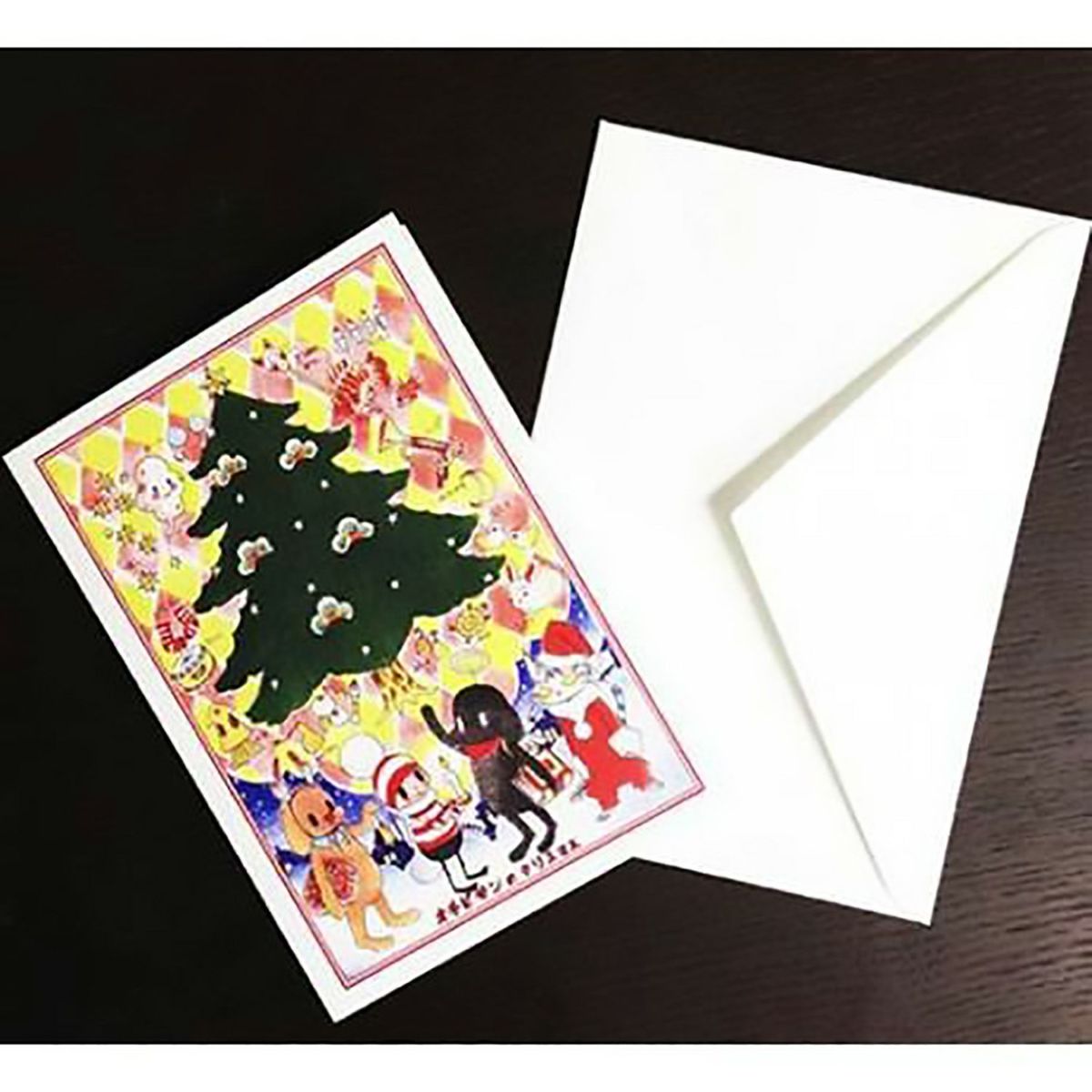 「オチビサンのクリスマス」ポストカードが、二つ折りのメッセージカードにな