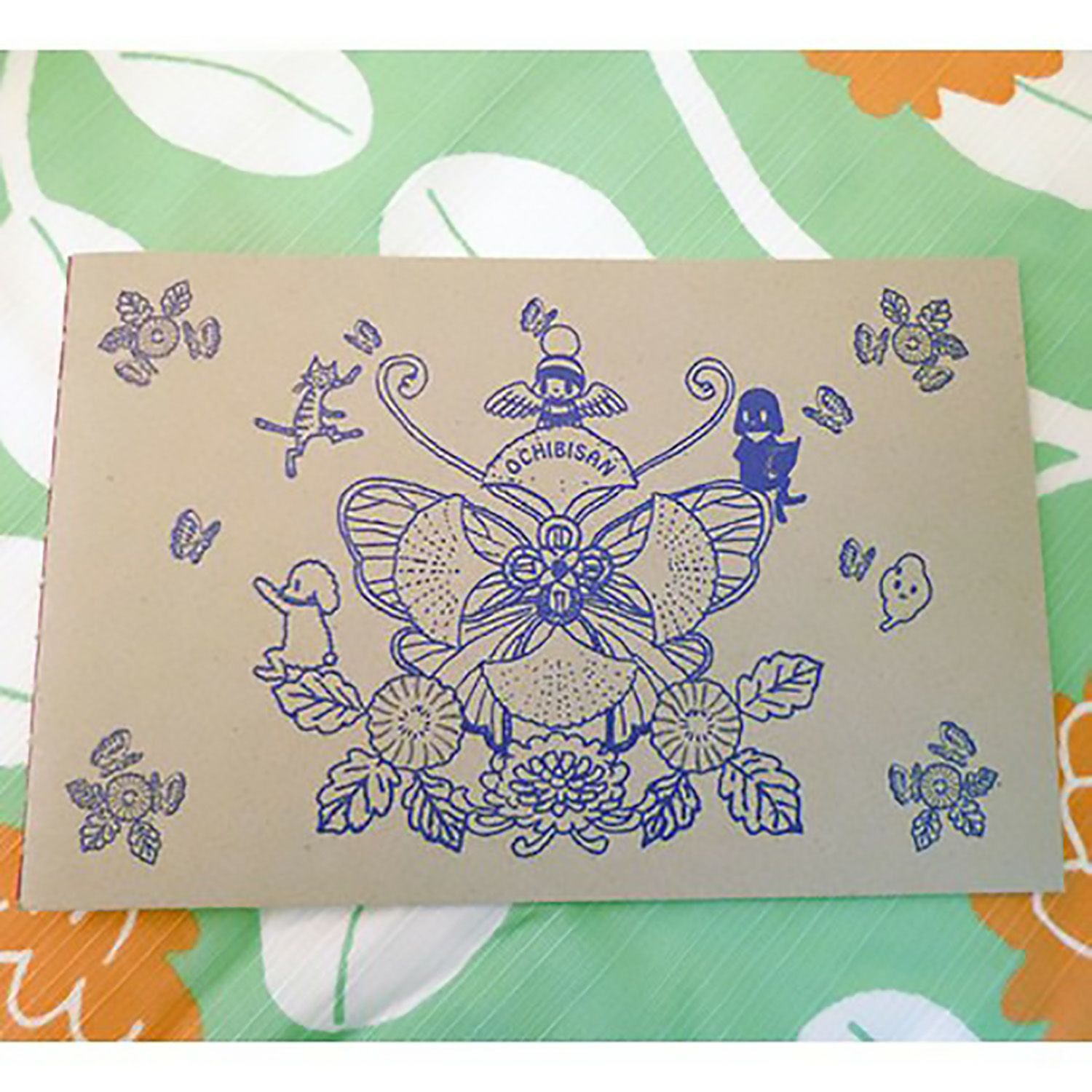 安野モヨコらしい花と蝶々がレトロモダンにデザイン化されたアイコンのまわりにオチビやシロッポイ、ナゼニ、パンくいが、小さな蝶々たちと戯れています。