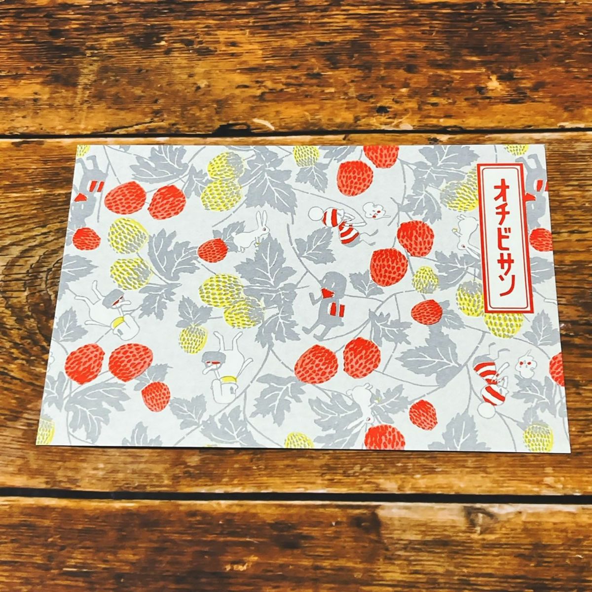 BOX&NEEDLEコラボによる「オチビサンの宝箱」デザインの「いちご柄」「おいも柄」をポストカードにしました。