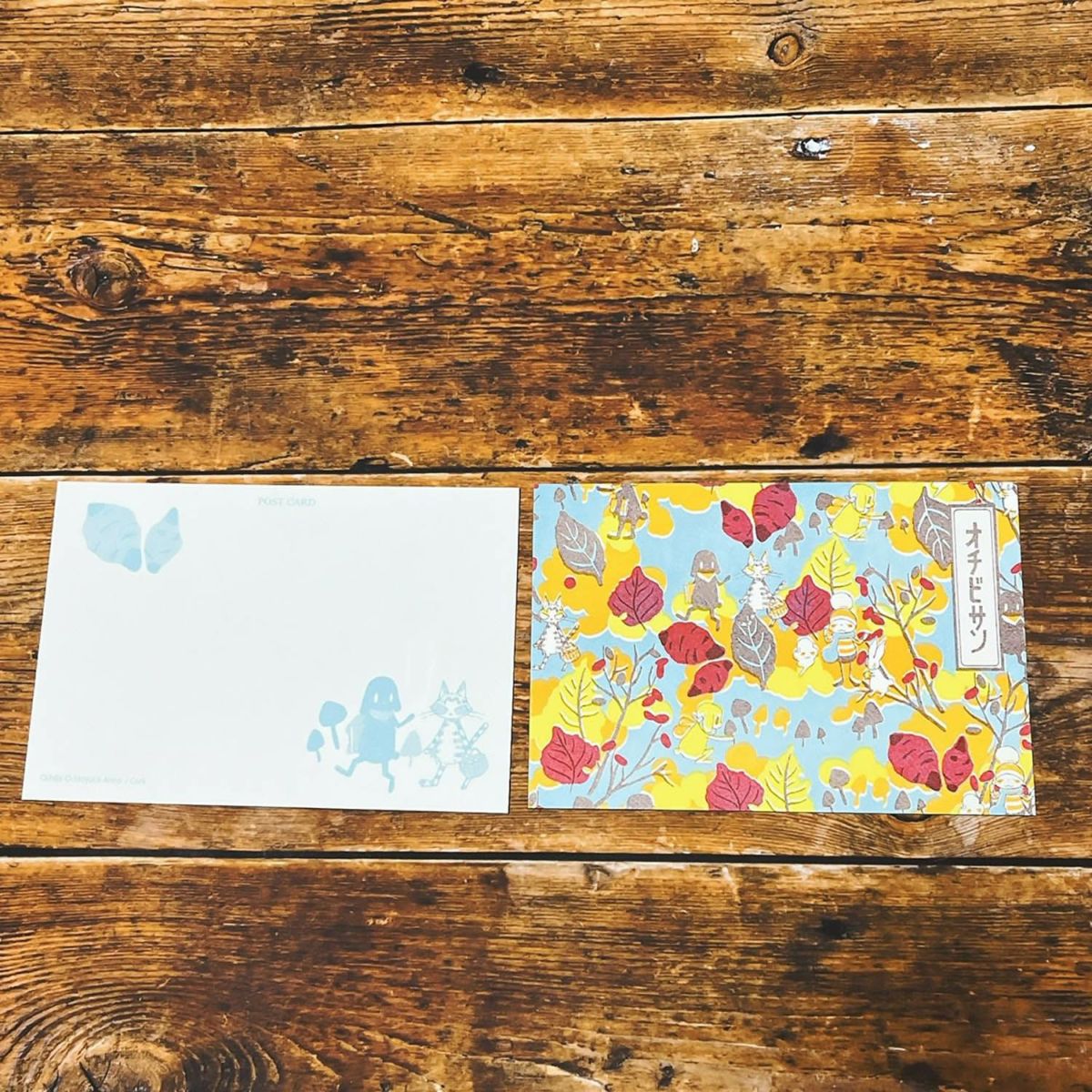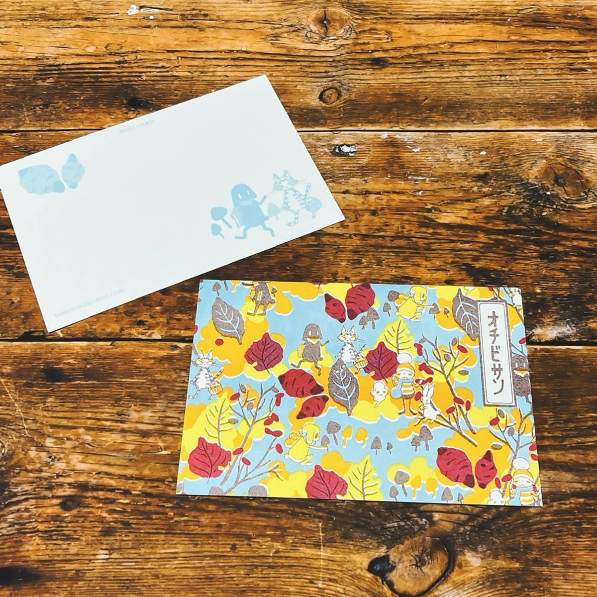 BOX&NEEDLEコラボによる「オチビサンの宝箱」デザインの「いちご柄」「おいも柄」をポストカードにしました。
