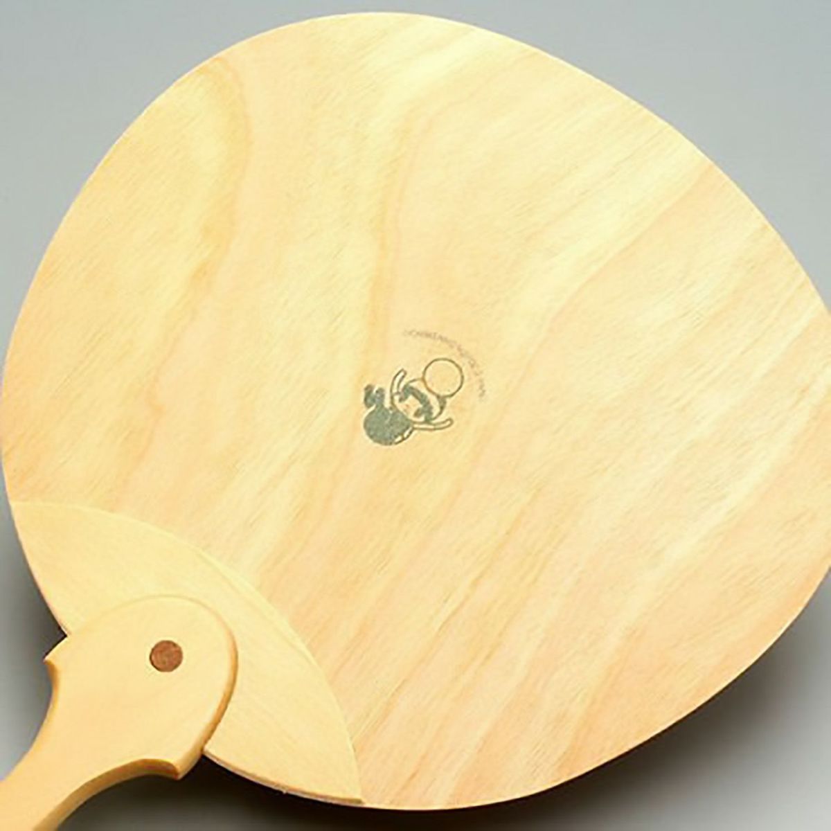 木材をうすーく薄く加工した板2枚のあいだに、丈夫な和紙をはさみこんで三層に貼り合わせたうちわです。広げた手のひらほどのサイズでありながら、この薄い板の適度なしなりで、心地よくおだやかな風をおこしてくれます。ときおり「ふっ」と感じる、木の香りでもリラックスできそう。暑い時期だけでなく、ちらし寿司の酢飯をパタパタあおいでつややかに仕上げたり、アウトドアでの火おこしなど「道具」としても年中活躍するアイテムです。