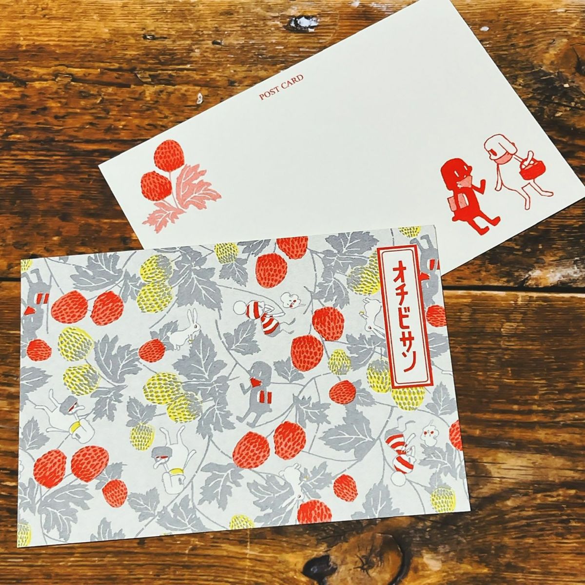 BOX&NEEDLEコラボによる「オチビサンの宝箱」デザインの「いちご柄」「おいも柄」をポストカードにしました。