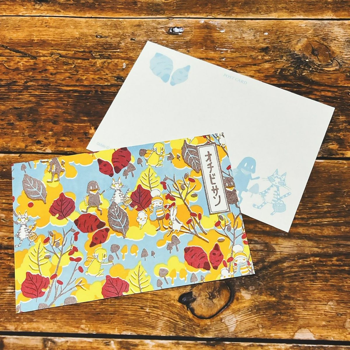 BOX&NEEDLEコラボによる「オチビサンの宝箱」デザインの「いちご柄」「おいも柄」をポストカードにしました。