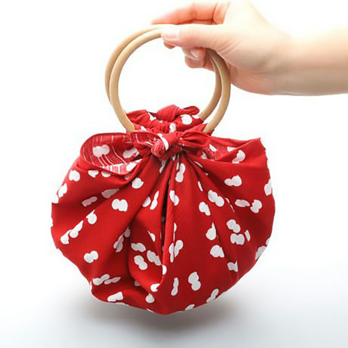 風呂敷の素材はシルクやレーヨンなどさまざまですが、ひとたび綿の風呂敷を使ってみると、結び目を「きゅっ!」と締められるのがとっても快感なのです。シャンタン風に織り上げられた綿生地はさらりと気持ちよく、しっかりめの厚さ。お洗濯をしても型くずれしにくいですし、少しくらいお弁当の汁がこぼれても、きちんと吸水してくれることでしょう。