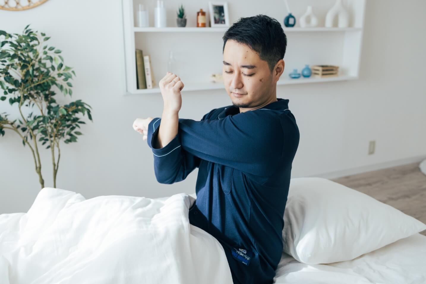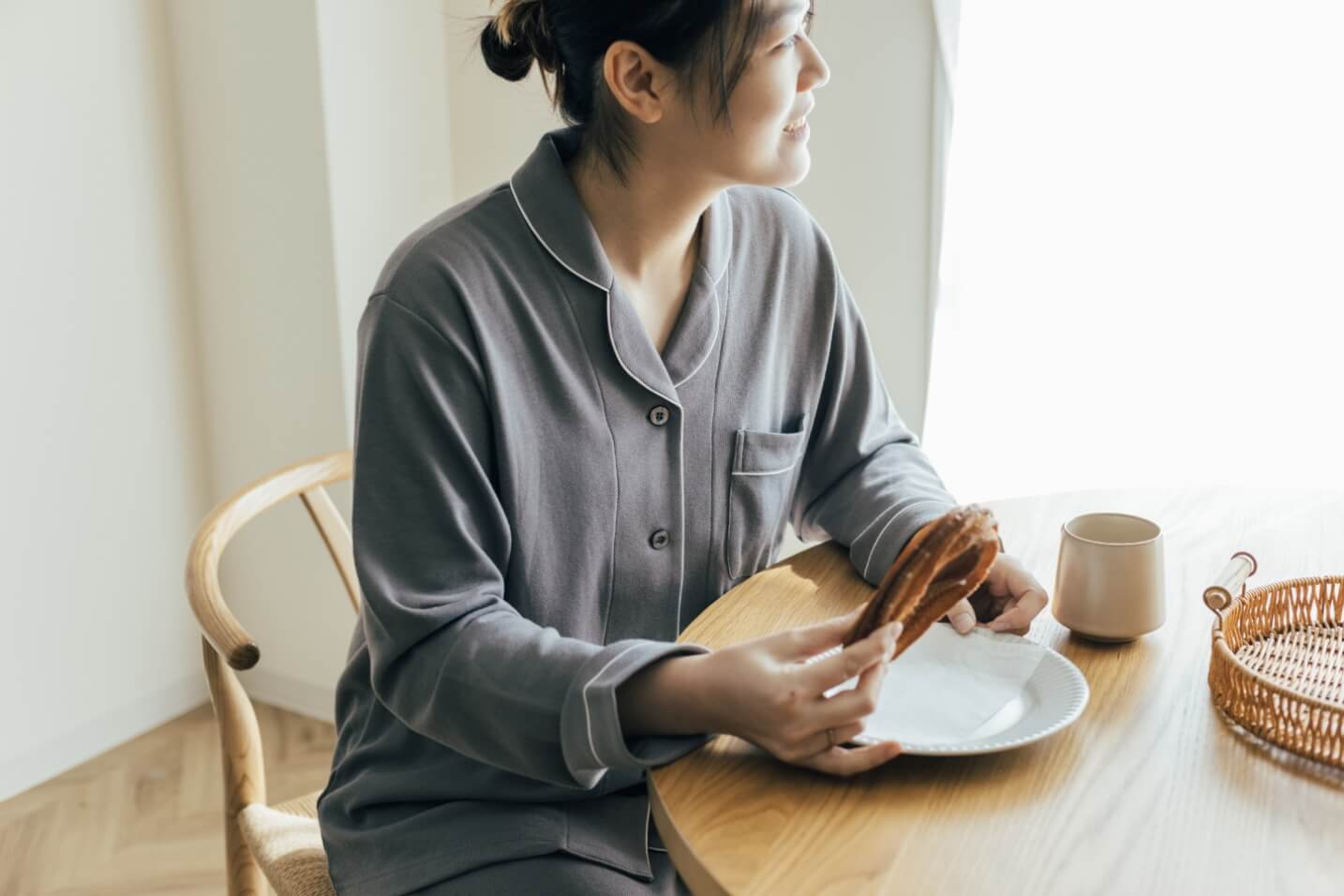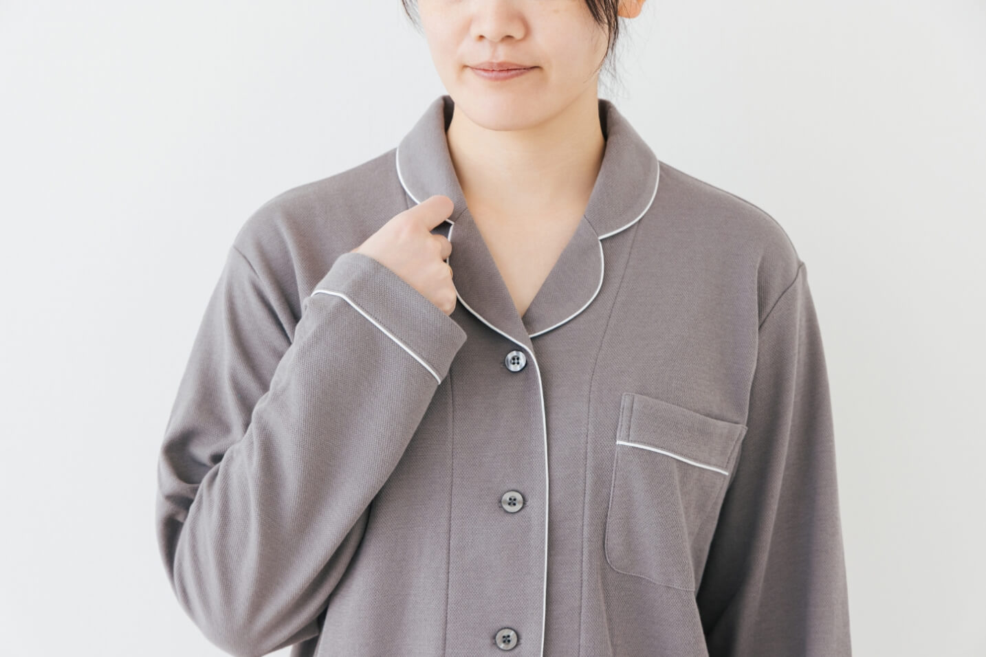 機能性パジャマであることを忘れるほど、身体にふわっとなじみ、眠りのリズムを邪魔しません。※綿糸「金魚®」ブランドは1918年(大正7年)にタオル用原糸として誕生しました。その後、2015年にブランドが復活し、抗菌機能を持たせたものが「金魚Ag®」です。
