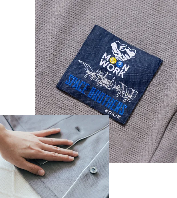 ムッタの言葉「ちょっとだけ無理なことに挑戦してこーぜ」をコンセプトに、新たな挑戦をする人たちを応援する仕事着シリーズです。宇宙服が過酷な環境にいる宇宙飛行士を支えるように、高技術素材を使ったMOONWORKシリーズが、がんばる人をサポートします。